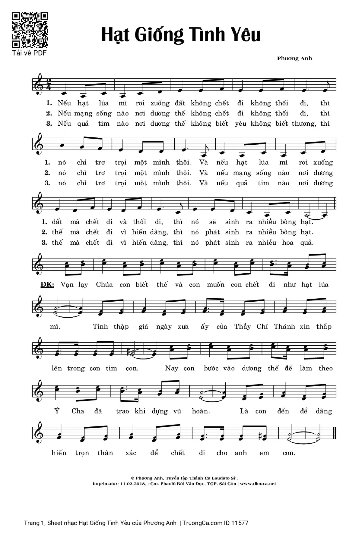 Phương Anh Nếu hạt lúa mì rơi xuống đất không chết đi [PDF] [Sheet] [Lời H.A] [Mp4/Midi]