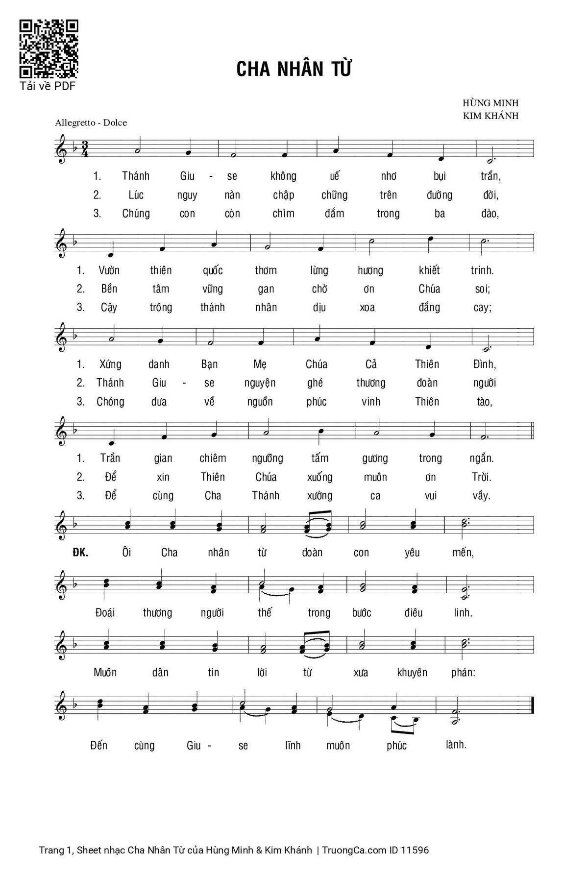 Các sheet PDF cùng tên Cha Nhân Từ: