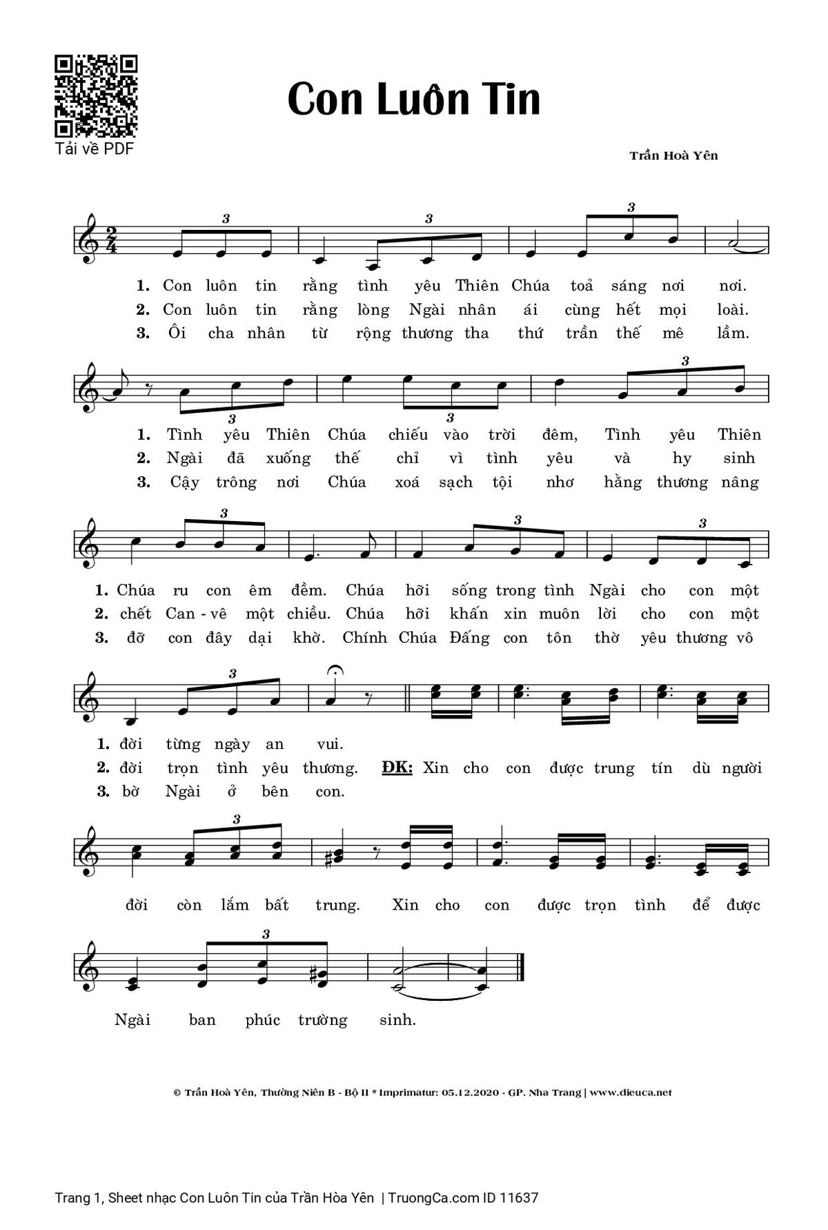 1. Con luôn tin rằng tình yêu Thiên Chúa toả sáng nơi nơi. Tình yêu Thiên Chúa chiếu vào trời đêm, Tình yêu Thiên Chúa ru con êm đềm. Chúa hỡi sống trong tình Ngài cho con một đời từng ngày an vui.