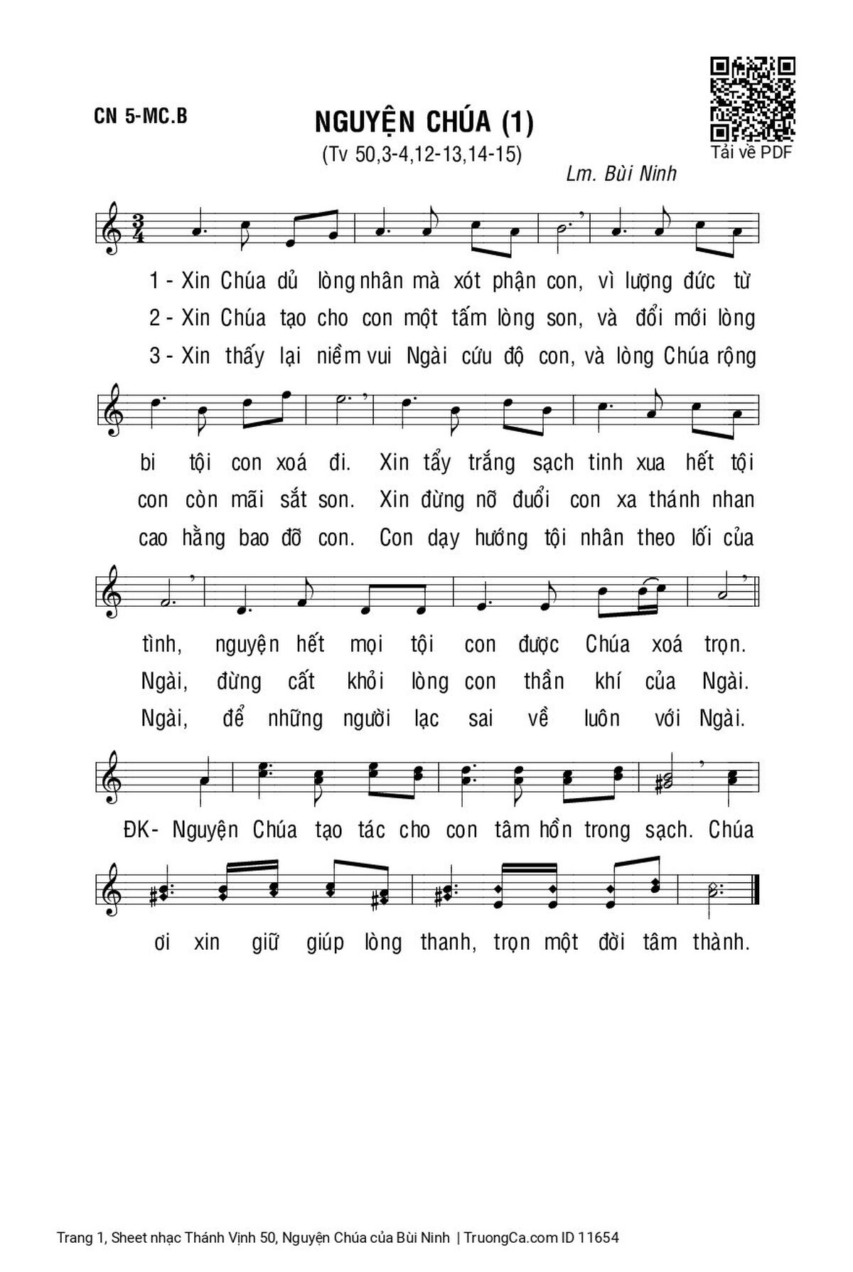 Bùi Ninh Xin Chúa dủ lòng nhân mà xót phận con vì lượng đức từ bi tội con xóa đi [PDF] [Sheet] [Lời H.A] [Mp4/Midi]