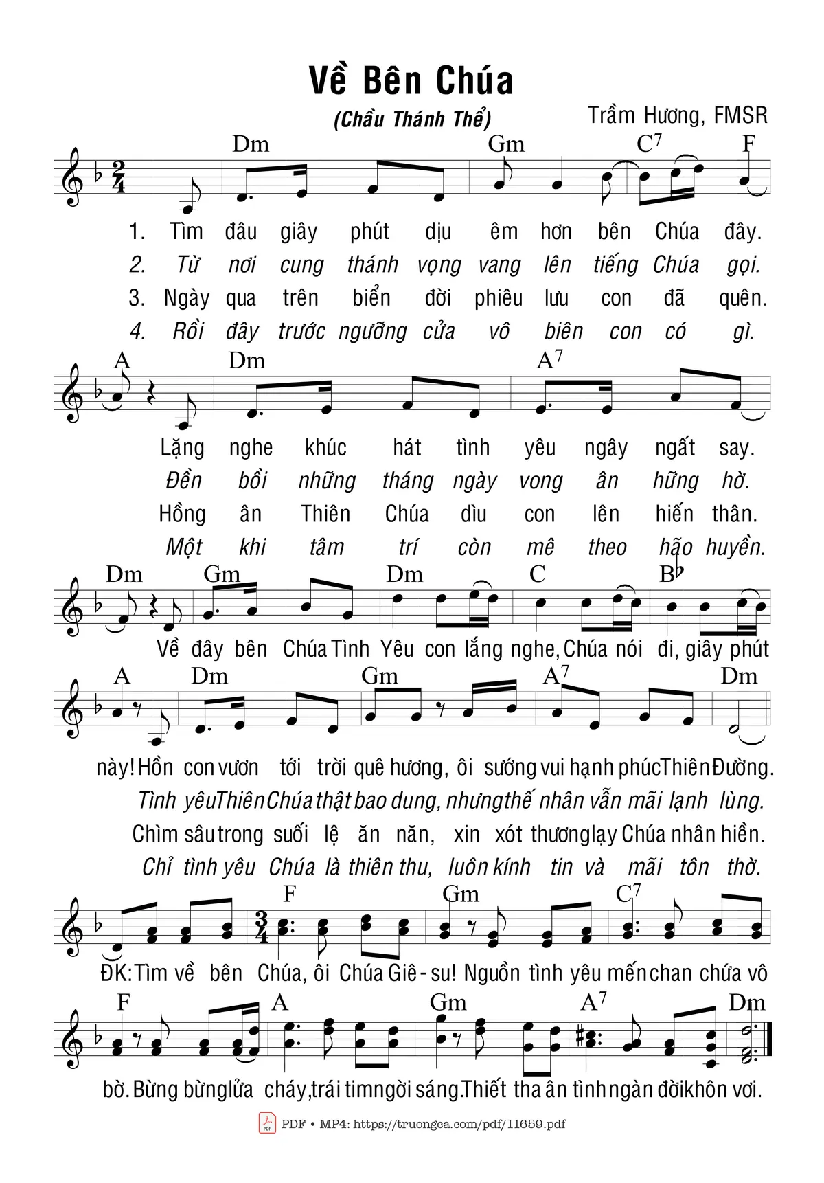 Trầm Hương Tìm đâu giây phút dịu êm hơn bên Chúa đây [PDF] [Sheet] [Lời H.A] [Mp4/Midi]
