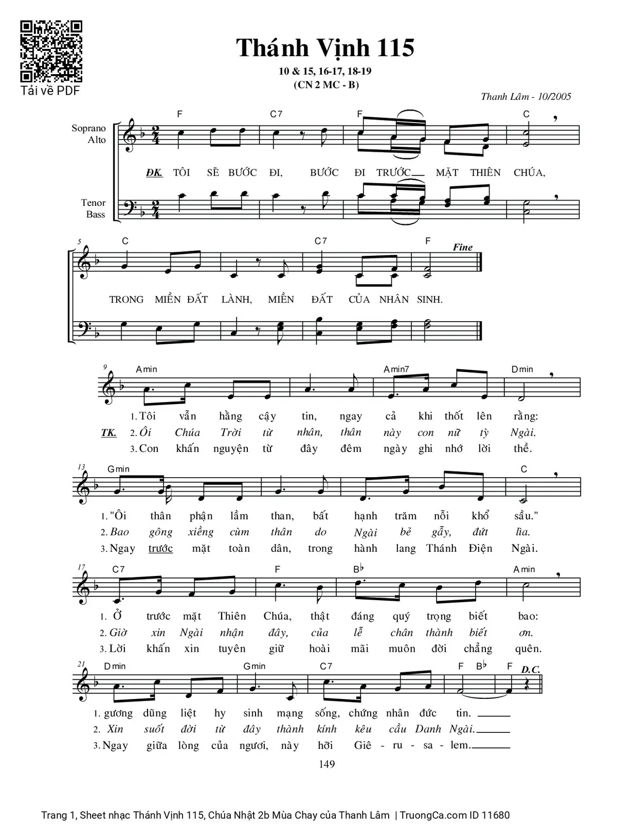 Thanh Lâm Tôi sẽ bước đi bước đi trước mặt Thiên Chúa [PDF] [Sheet] [Lời H.A] [Mp4/Midi]