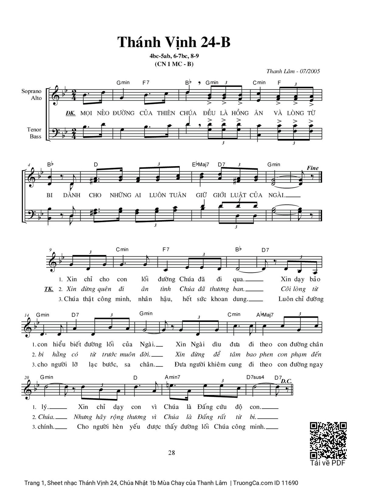 Các sheet PDF cùng tên Thánh Vịnh 24, Chúa Nhật 1b Mùa Chay: