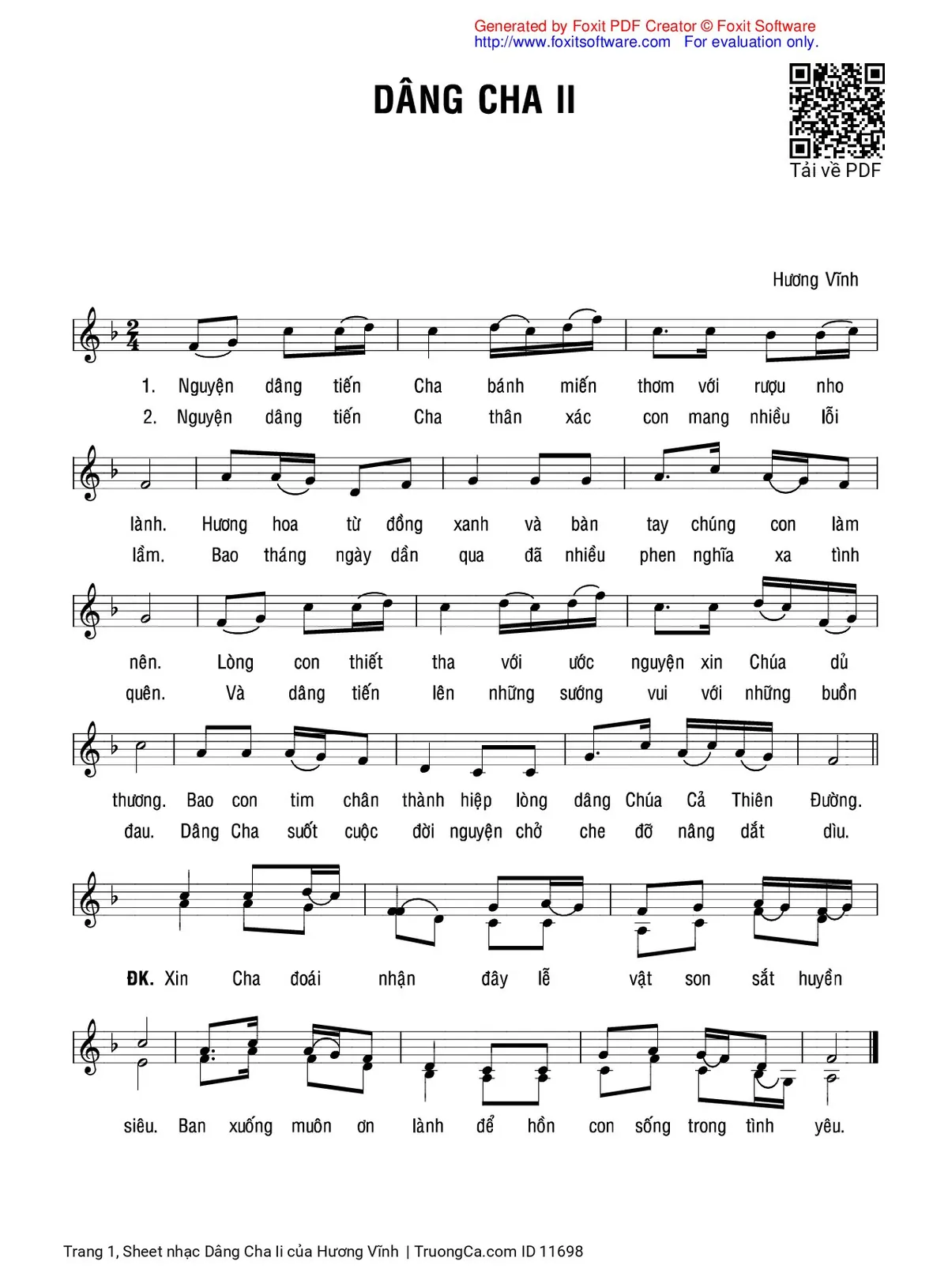 Các sheet PDF tương tự Dâng Cha Ii: