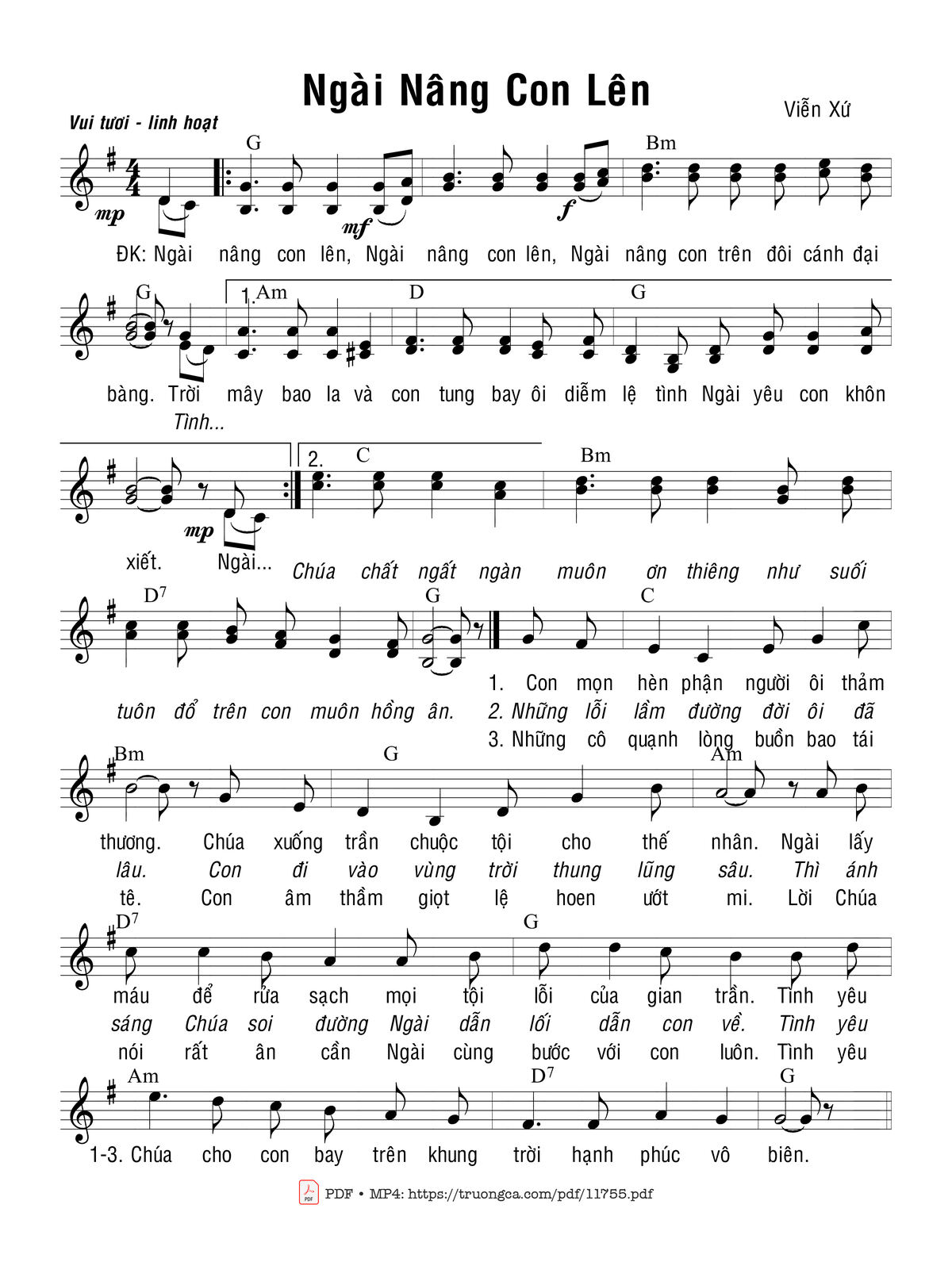 Viễn Xứ Ngài nâng con lên Ngài nâng con lên Ngài nâng con trên đôi cánh đại bàng [PDF] [Sheet] [Lời H.A] [Mp4/Midi]