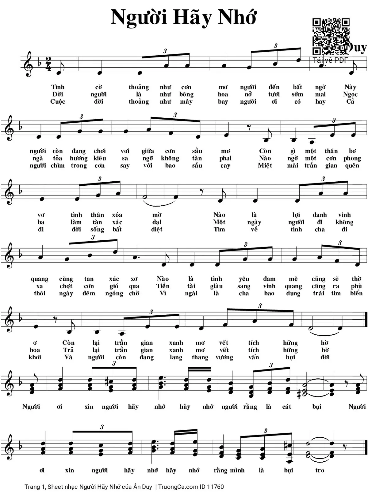 Các sheet PDF tương tự Người Hãy Nhớ: