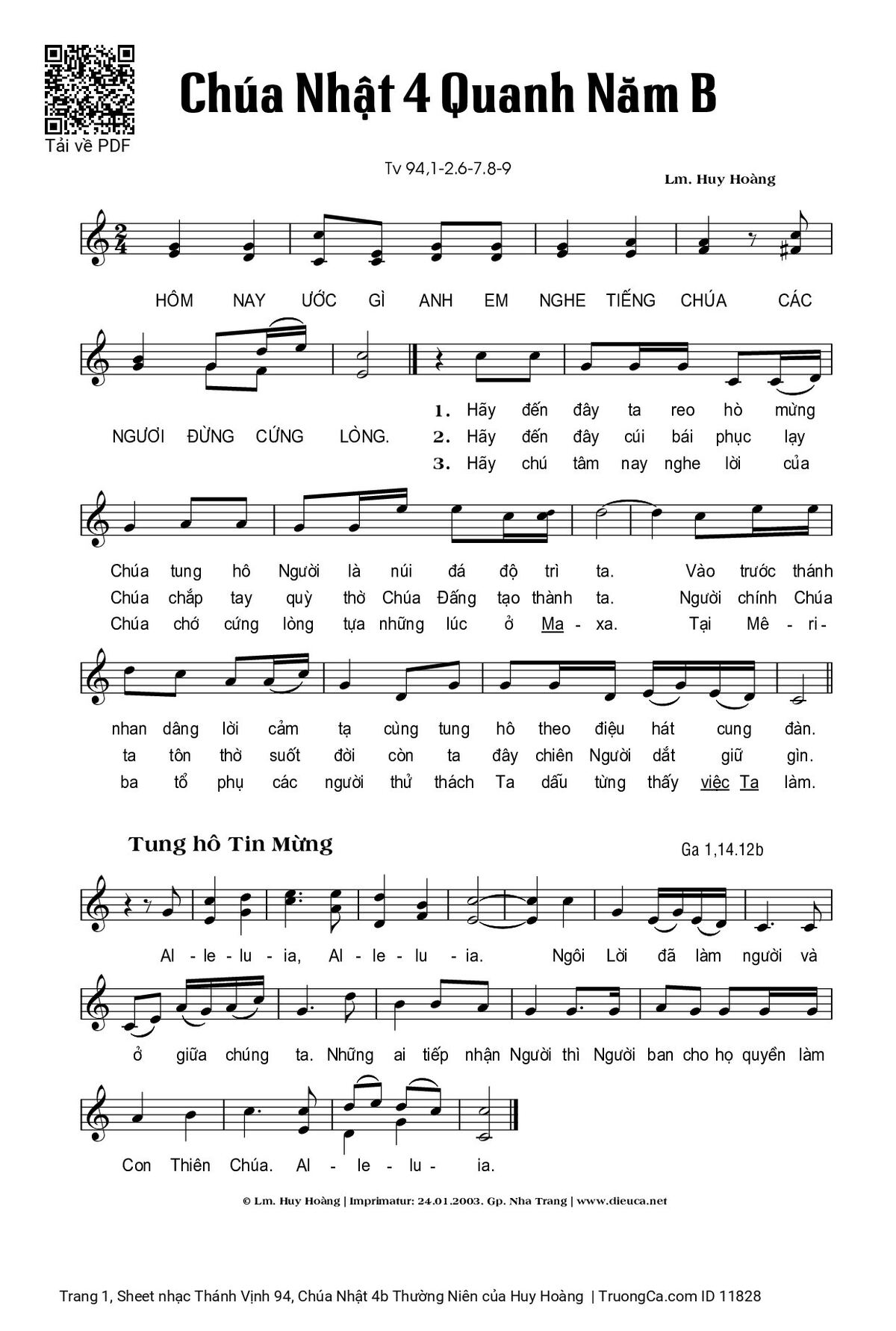 Các sheet PDF cùng tên Thánh Vịnh 94, Chúa Nhật 4b Thường Niên: