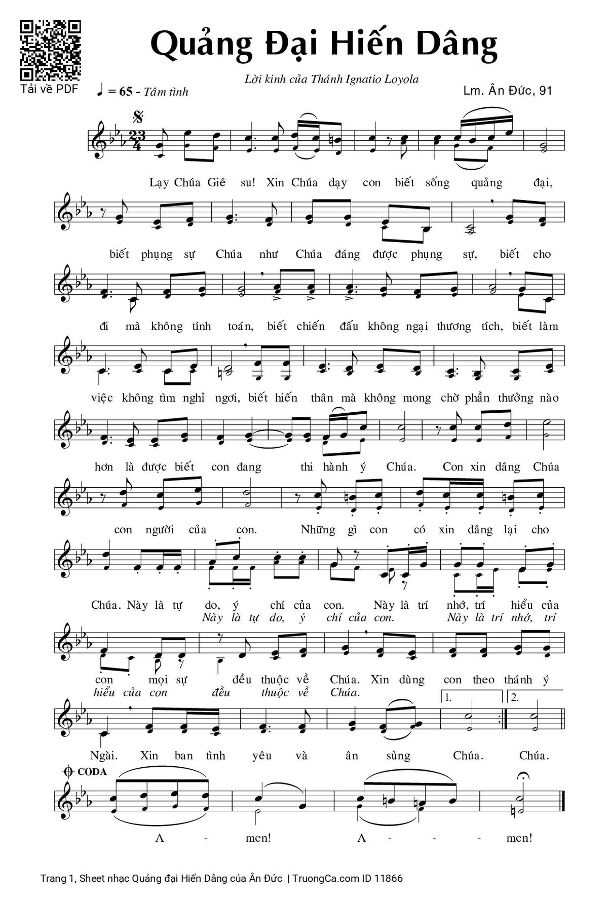 Phần nghe hát Quảng đại Hiến Dâng (Ân Đức) được nhúng từ Youtube, Musescore hoặc link ngoài và chịu sự kiểm soát bản quyền của bên thứ ba đó, vì vậy có thể bị xóa hoặc chèn quảng cáo bất kỳ lúc nào. Nếu bạn không nghe - xem được ca sĩ hát tức là đã bị Youtube hoặc Musescore kiểm soát.