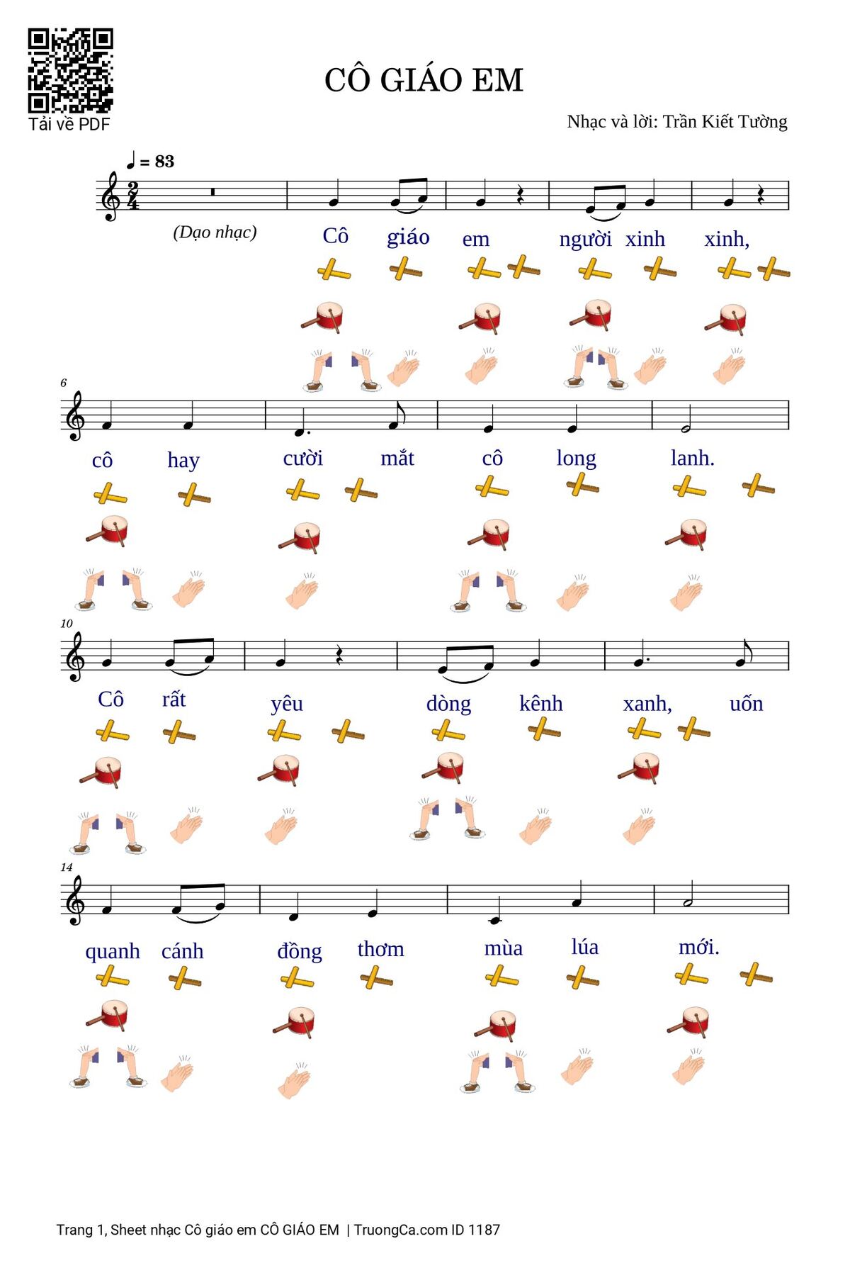 Trần Kiết Tường Cô giáo em người xinh xinh Cô hay cười mắt cô long lanh [PDF] [Sheet] [Lời H.A] [Mp4/Midi]