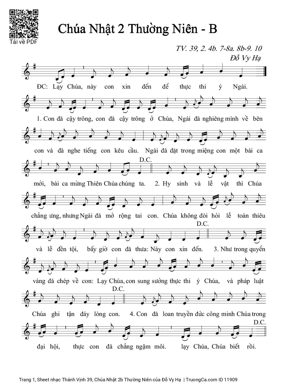 Các sheet PDF cùng tên Thánh Vịnh 39, Chúa Nhật 2b Thường Niên: