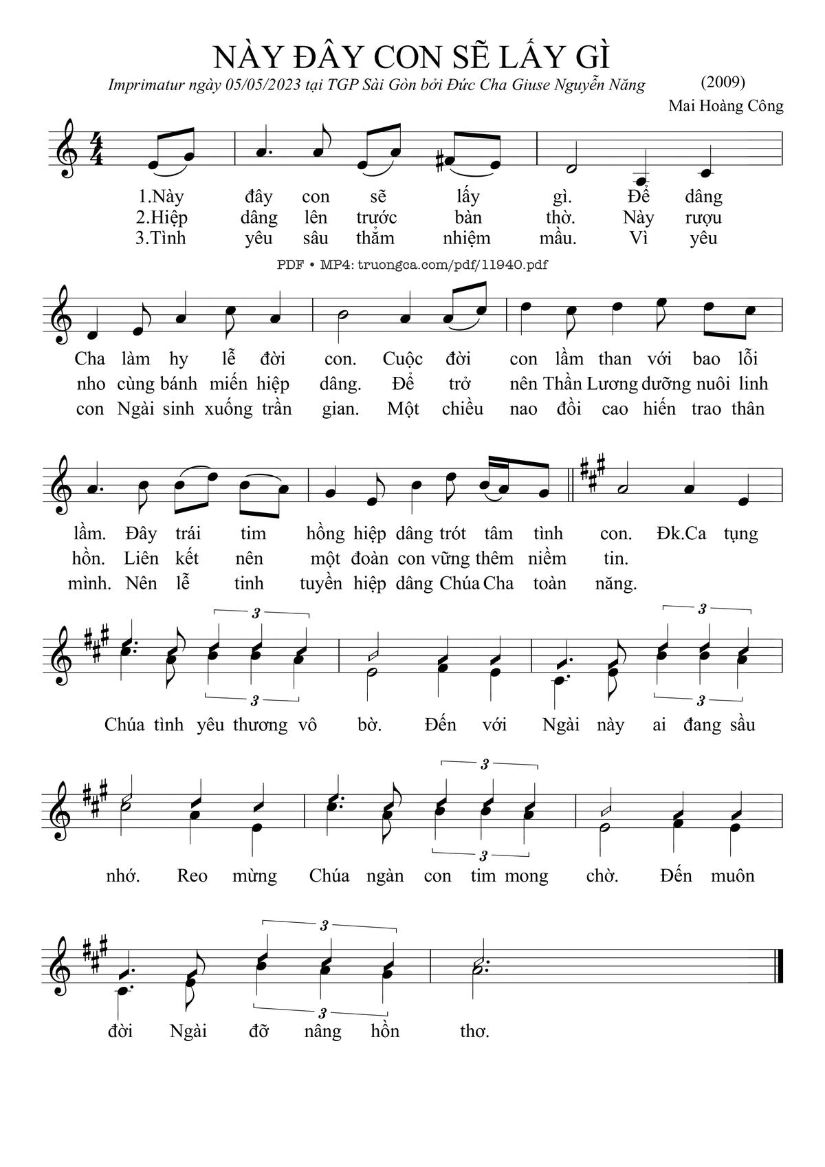 Câu đầu: Này đây con sẽ lấy gì Để dâng Cha làm hy lễ đời con