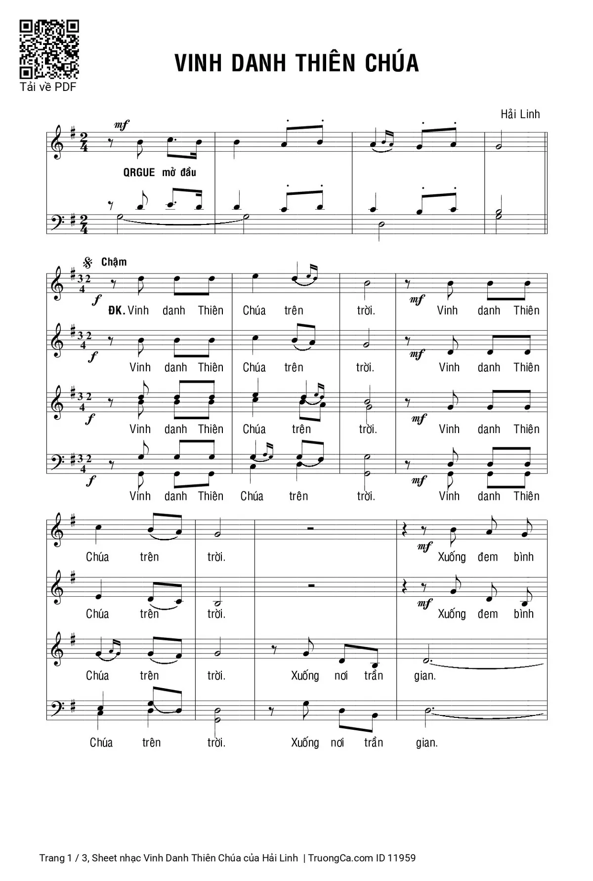 Hải Linh Vinh danh Thiên Chúa trên trời Vinh danh Thiên Chúa trên trời [PDF] [Sheet] [Lời H.A] [Mp4/Midi]