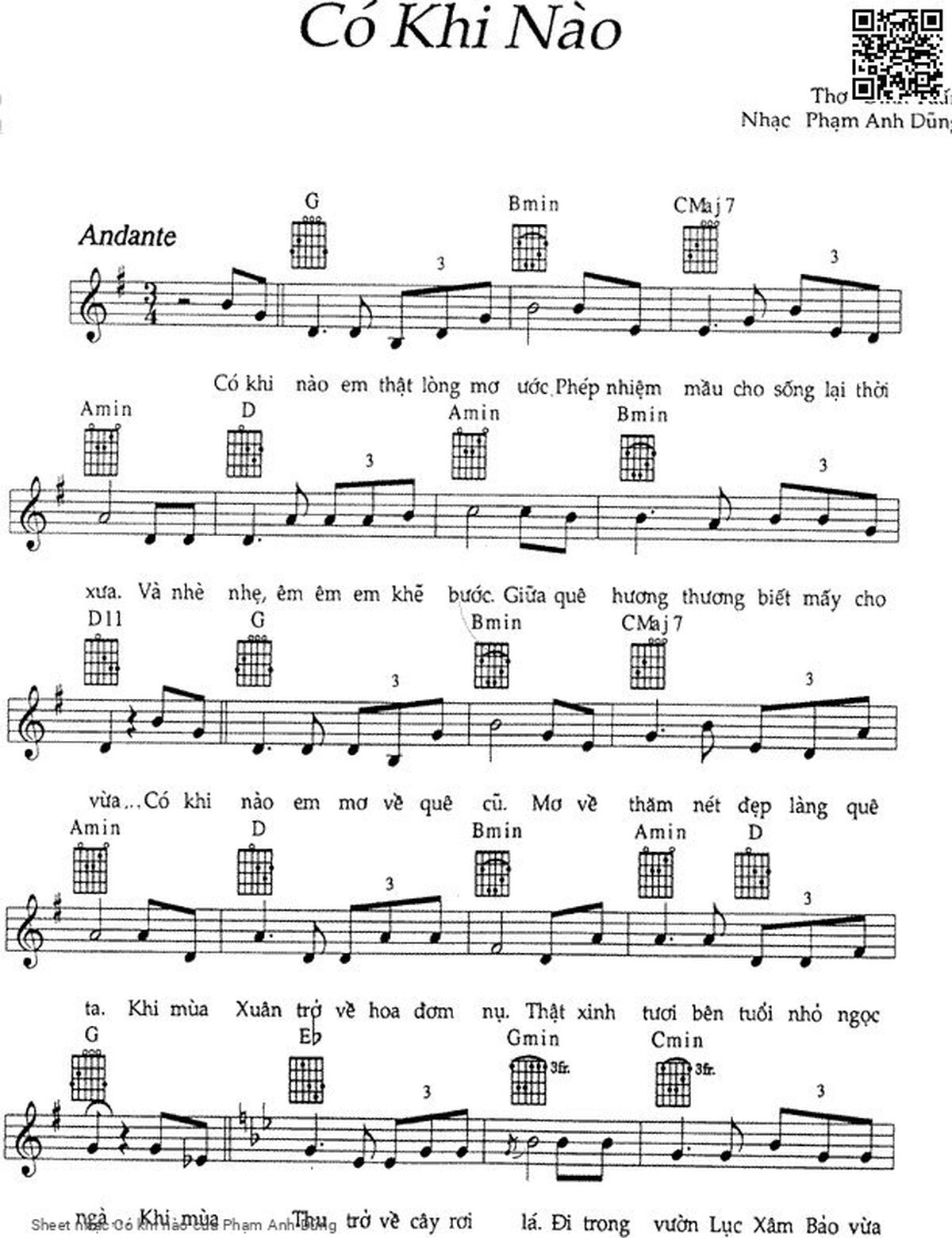 Chọn nút dấu + để tăng tông lên nửa cung, nút dấu - để giảm tông xuống nửa cung. Rê chuột vào hợp âm để xem các thế bấm hợp âm của bài hát Có khi nào.