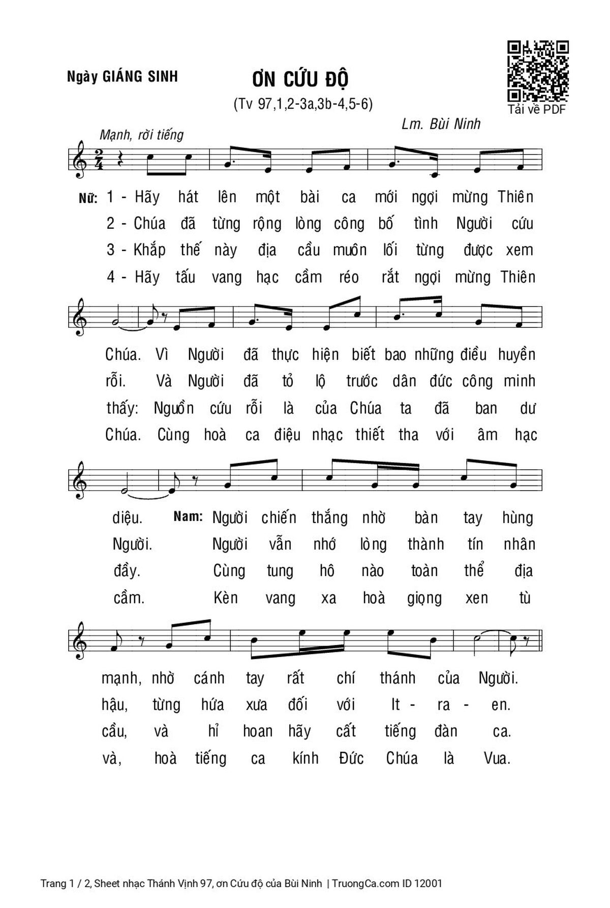 Thể loại 🌾 Nhạc Thánh Ca, 🌾 Thánh Vịnh - Đáp Ca, 🌾 Thánh ca Imprimatur, 🌾 Lễ Giáng Sinh - Thánh Lễ Ban Ngày, 🌾 Thánh Vịnh 97