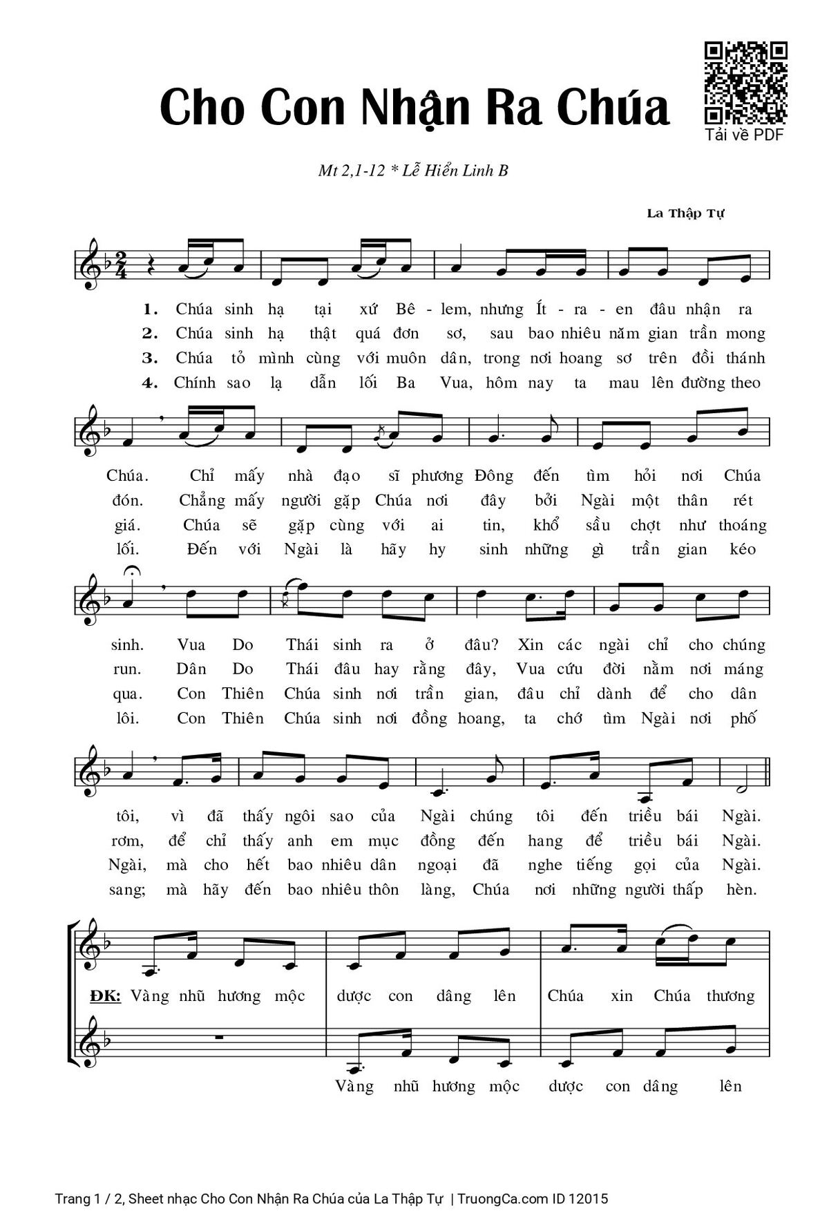 Các sheet PDF cùng tên Cho Con Nhận Ra Chúa: