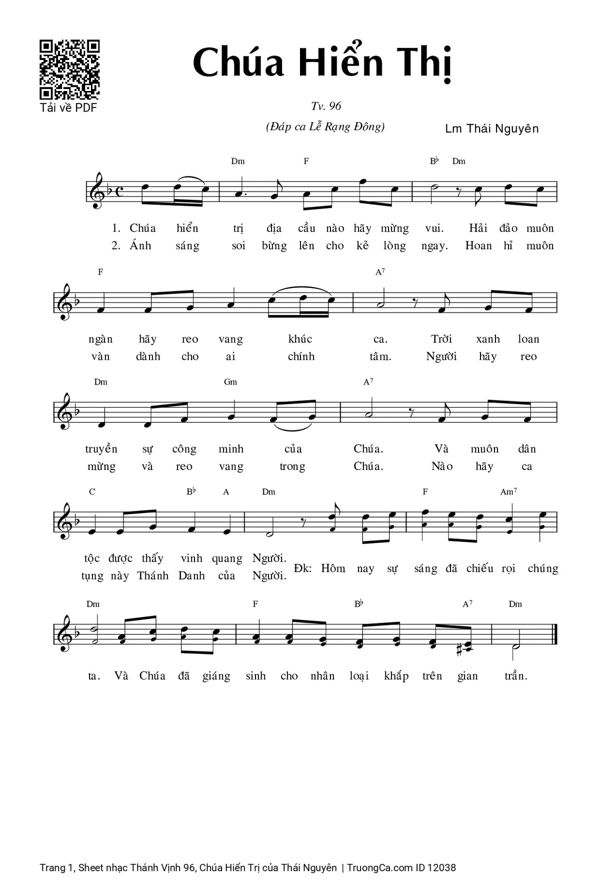 Thái Nguyên Hôm nay sự sáng đã chiếu dọi chúng ta Và Chúa đã giáng sinh cho nhân loại khắp trên gian trần [PDF] [Sheet] [Lời H.A] [Mp4/Midi]