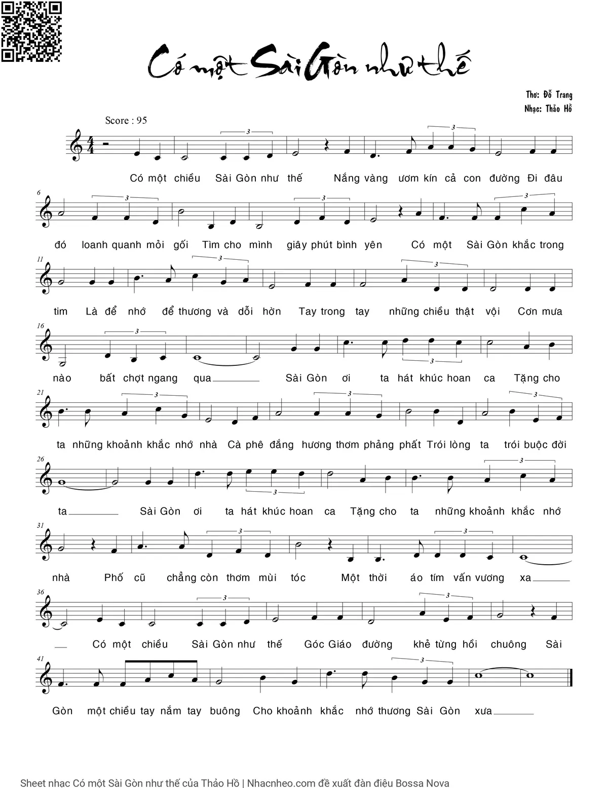 Thảo Hồ Có một chiều Sài Gòn như thế [PDF] [Sheet] [Lời H.A] [Mp4/Midi]