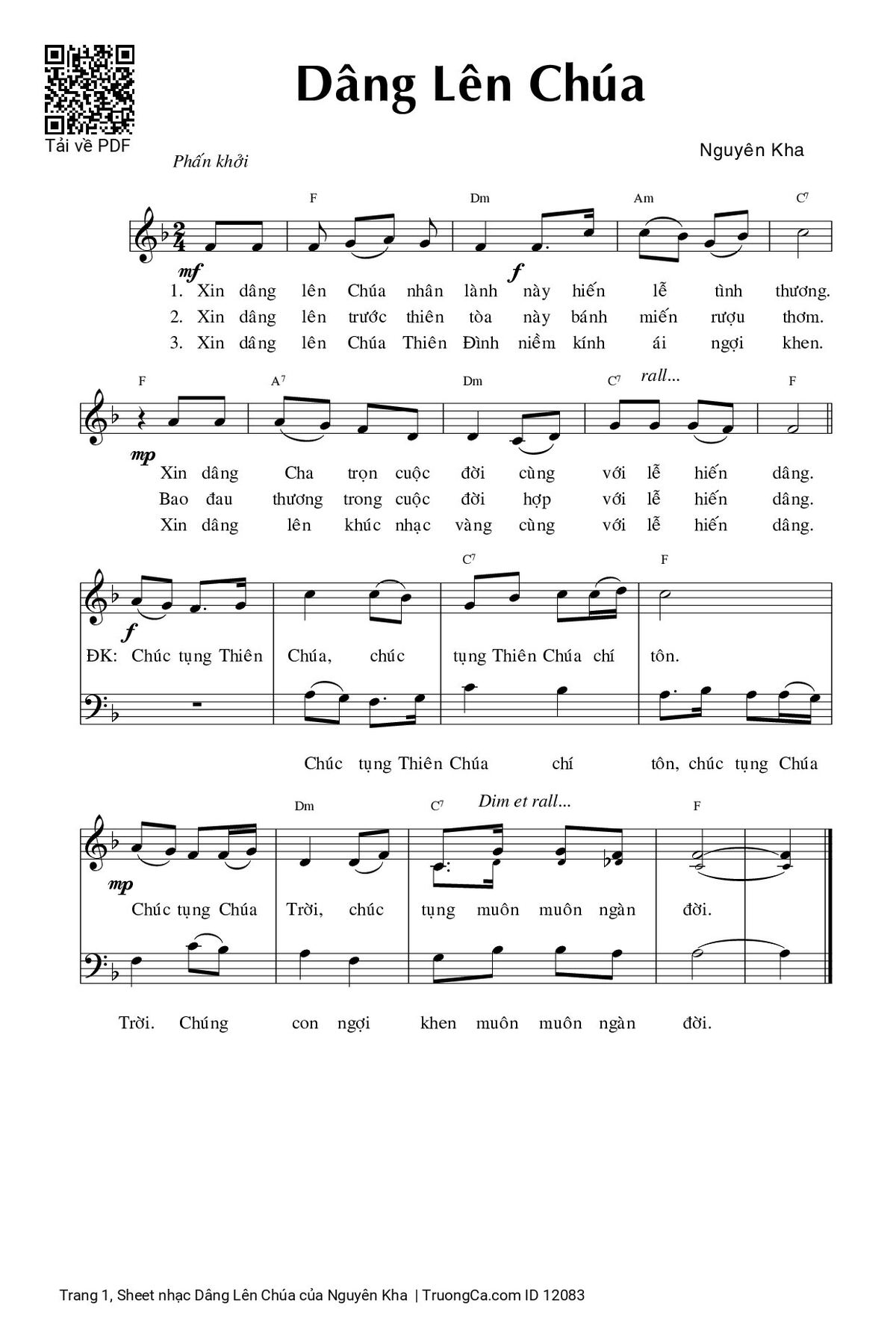 Nguyên Kha Xin dâng lên Chúa nhân lành này hiến lễ tình thương [PDF] [Sheet] [Lời H.A] [Mp4/Midi]