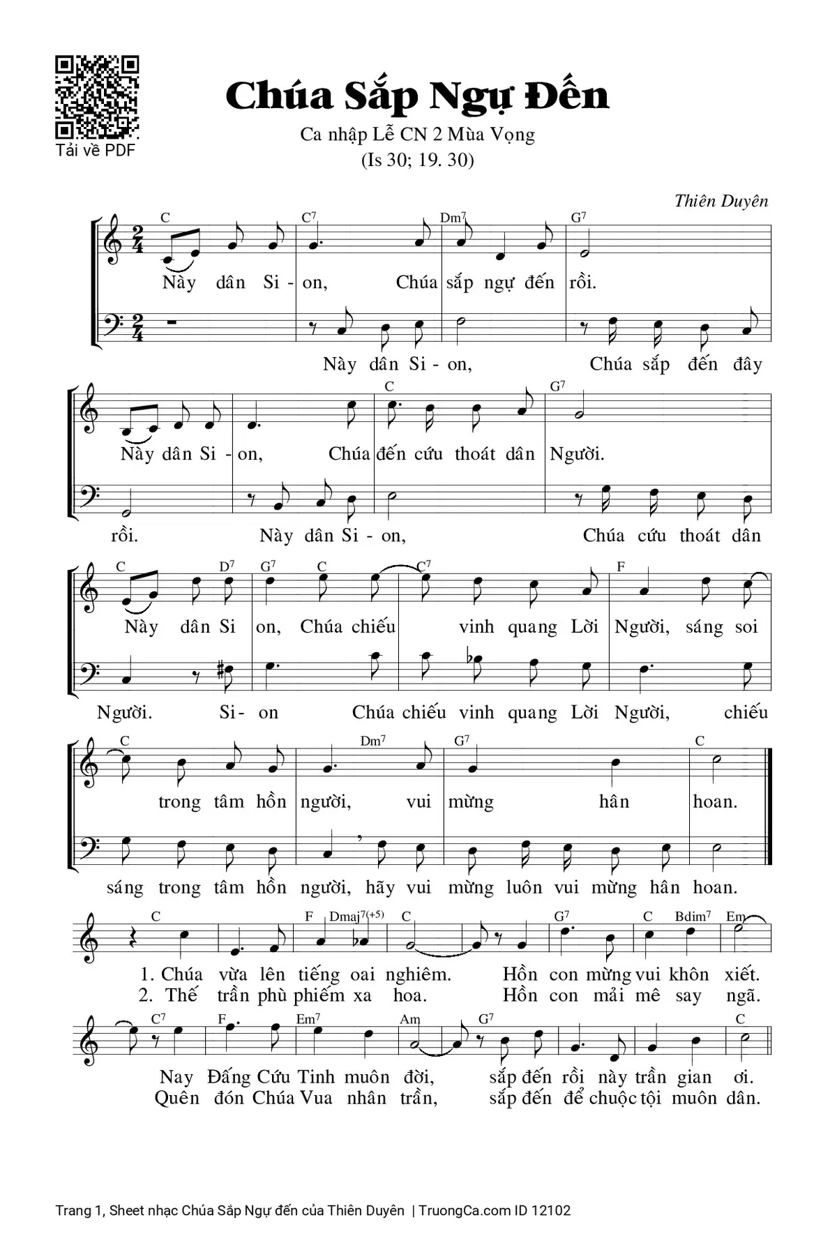 Điệp khúc. Này dân Si-on, Chúa sắp ngự đến rồi. Này dân Si-on, Chúa đến cứu thoát dân Người. Này dân Si-on, Chúa chiếu vinh quang Lời Người, sáng soi trong tâm hồn người, vui mừng hân hoan.