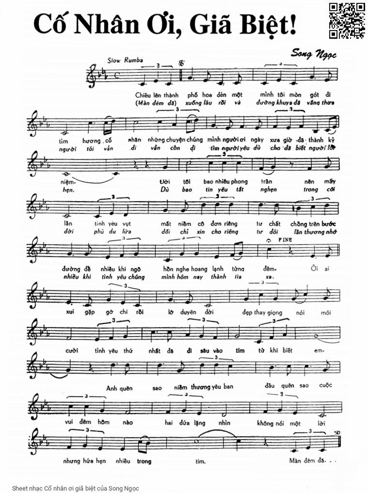 Phần nghe hát Cố nhân ơi giã biệt (Song Ngọc) được nhúng từ Youtube, Musescore hoặc link ngoài và chịu sự kiểm soát bản quyền của bên thứ ba đó, vì vậy có thể bị xóa hoặc chèn quảng cáo bất kỳ lúc nào. Nếu bạn không nghe - xem được ca sĩ hát tức là đã bị Youtube hoặc Musescore kiểm soát.