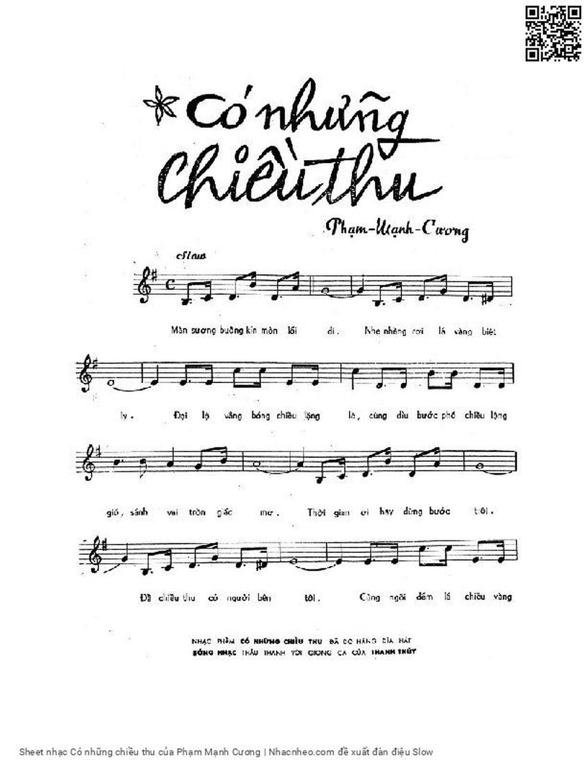 Phạm Mạnh Cương Màn sương buông kín mòn lối đi Nhẹ nhàng rơi lá vàng biệt ly [PDF] [Sheet] [Lời H.A] [Mp4/Midi]