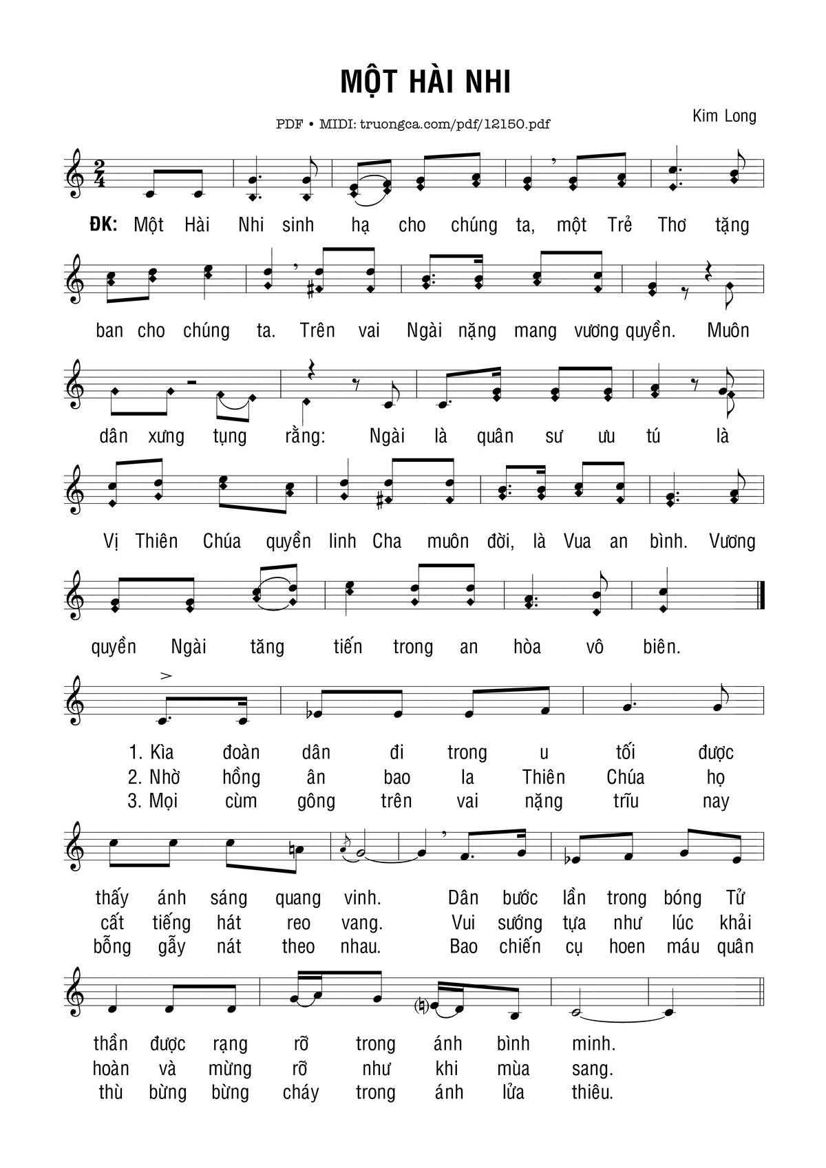 Kim Long ÐK Một hài nhi sinh hạ cho chúng ta một trẻ thơ đã ban tặng cho chúng [PDF] [Sheet] [Lời H.A] [Mp4/Midi]