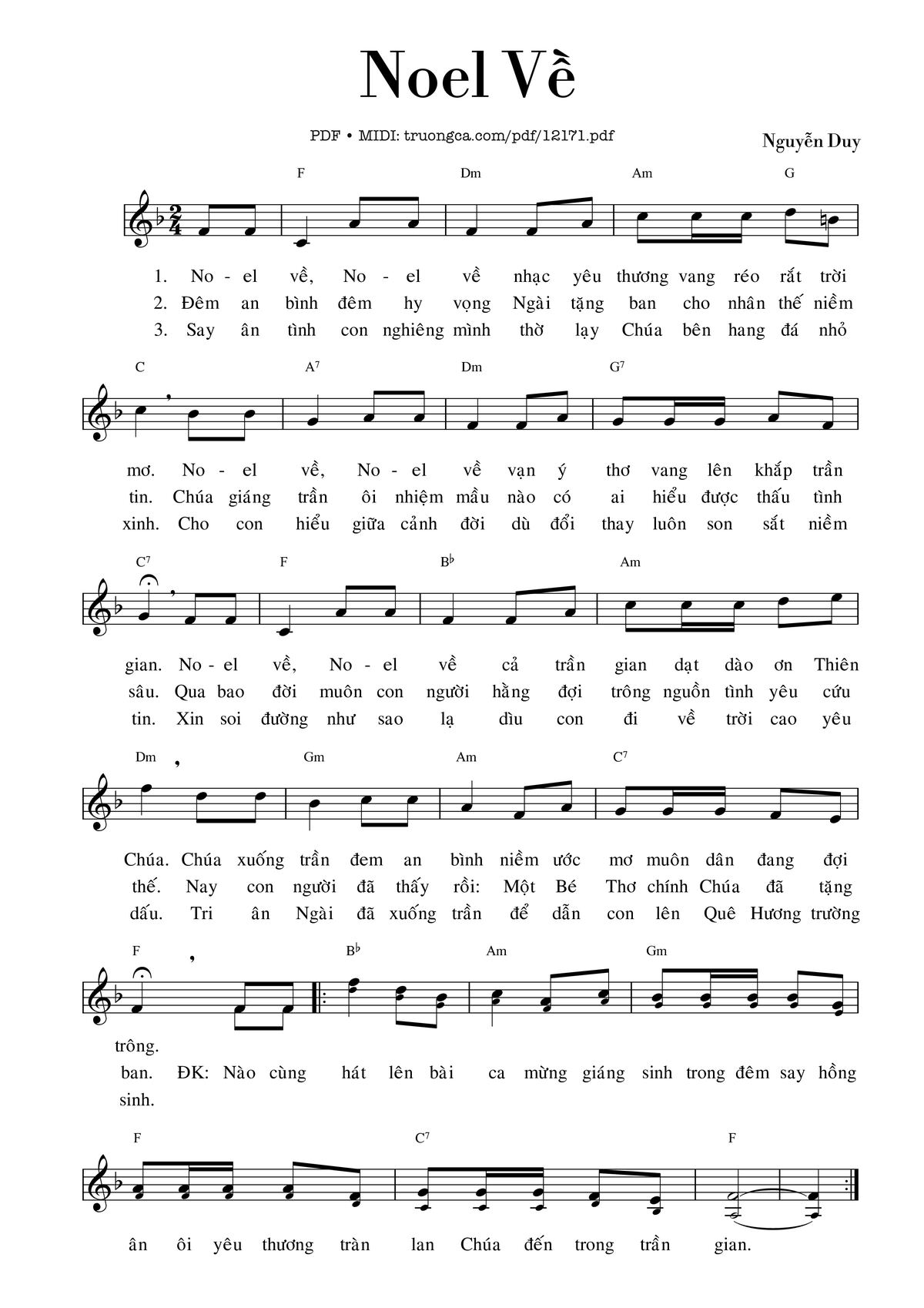 Nguyễn Duy Noel về Noel về nhạc yêu thương vang réo rắt trời mơ [PDF] [Sheet] [Lời H.A] [Mp4/Midi]