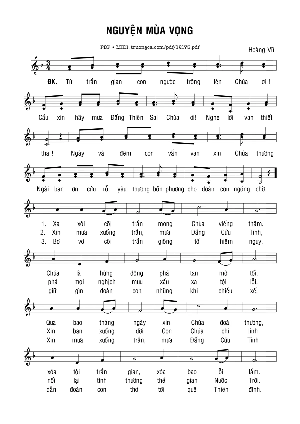 Hoàng Vũ Từ trần gian con ngước trông lên Chúa ơi [PDF] [Sheet] [Lời H.A] [Mp4/Midi]