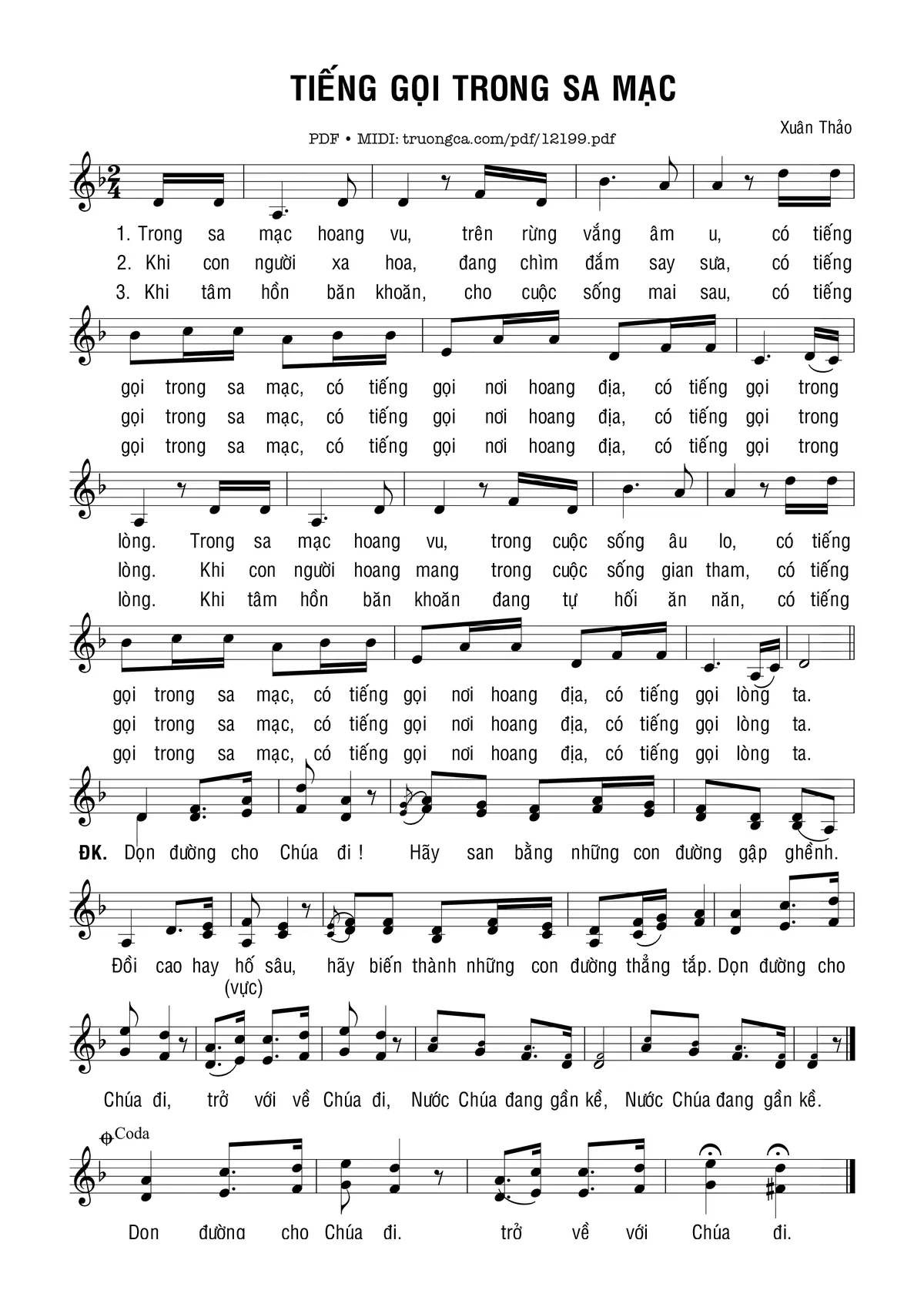 Xuân Thảo Trong sa mạc hoang vu Trên rừng vắng âm u [PDF] [Sheet] [Lời H.A] [Mp4/Midi]