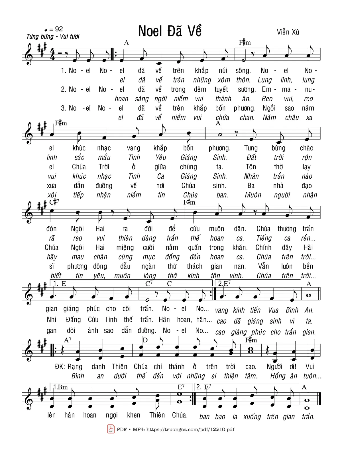 Viễn Xứ Thánh Ca Nguyện Cầu Mùa Giáng Sinh Noel Noel đã về trên khắp núi sông [PDF] [Sheet] [Lời H.A] [Mp4/Midi]