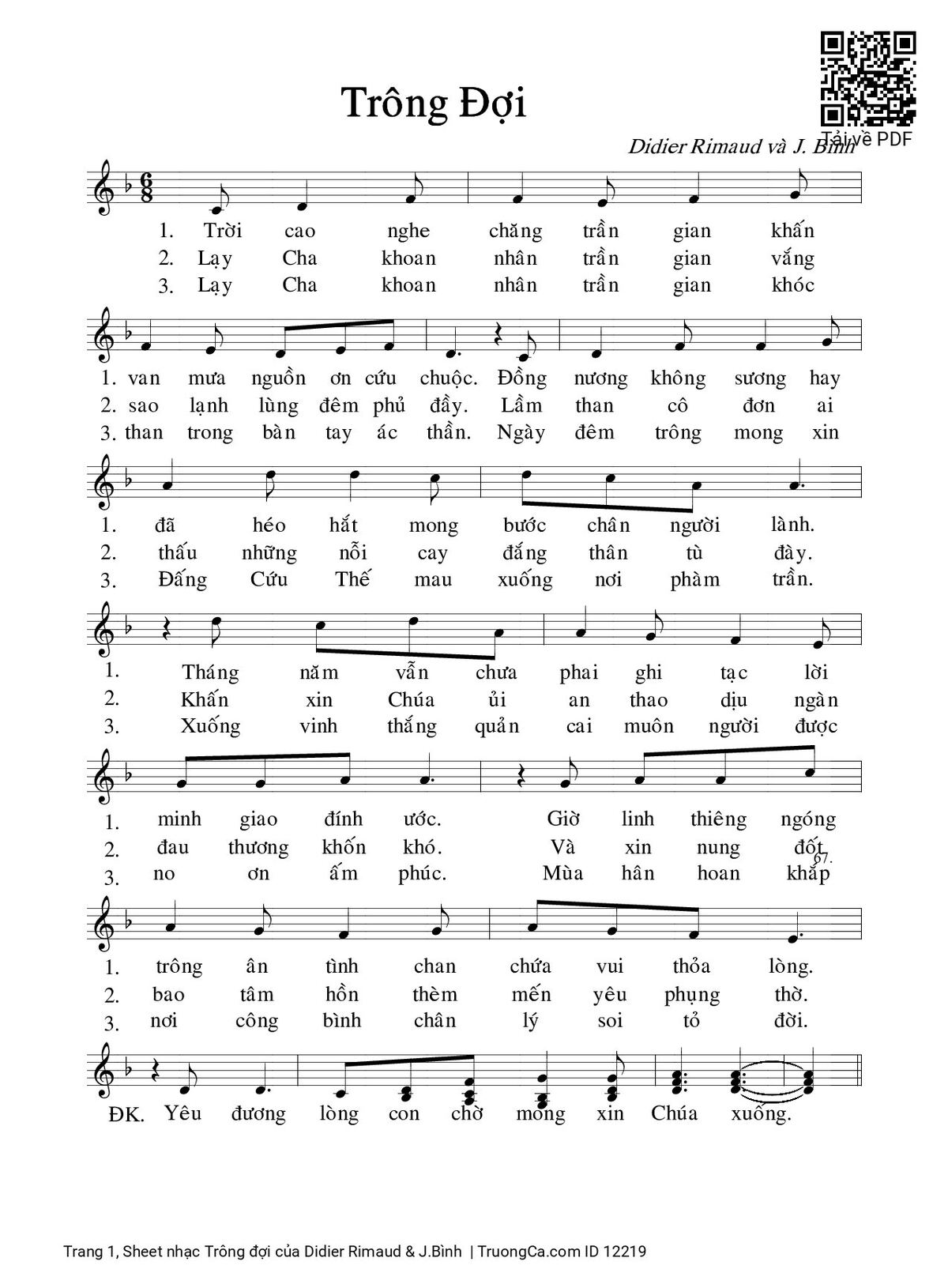1. Trời cao nghe chăng trần gian khấn van mưa nguồn ơn cứu chuộc. Đồng nương không sương nay đã héo hắt mong bước chân người lành. Tháng năm vẫn chưa phai ghi tạc lời minh giao đính ước. Giờ linh thiêng ngóng trông ân tình chan chứa vui thỏa lòng.