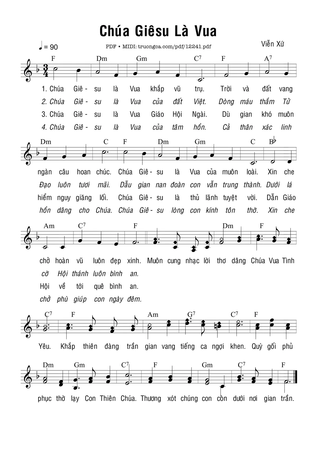 1. Chúa Giê su là Vua khắp vũ trụ. Trời và đất vang ngàn câu kính chúc. Chúa Giê su là Vua của muôn loài. Xin che chở hoàn vũ luôn đẹp xinh.