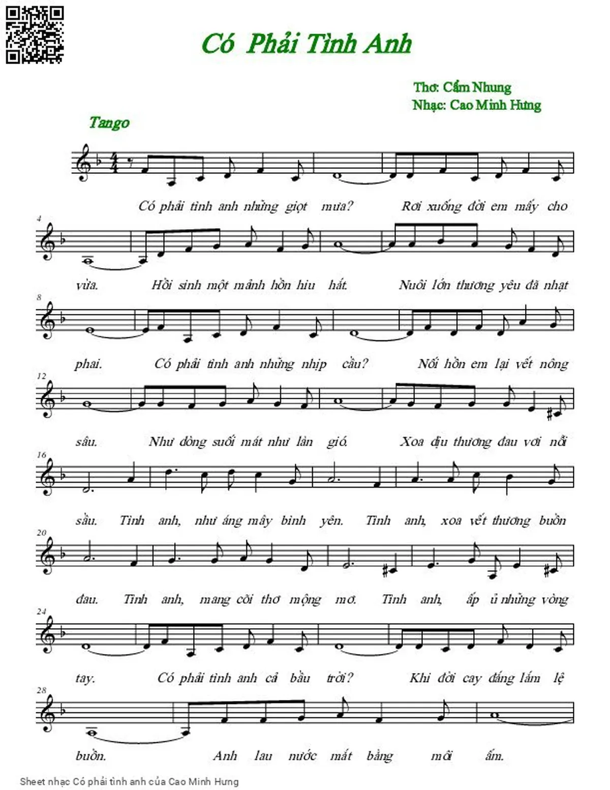 Cao Minh Hưng Có phải tình anh những giọt mưa Rơi xuống đời em mấy cho vừa [PDF] [Sheet] [Lời H.A] [Mp4/Midi]