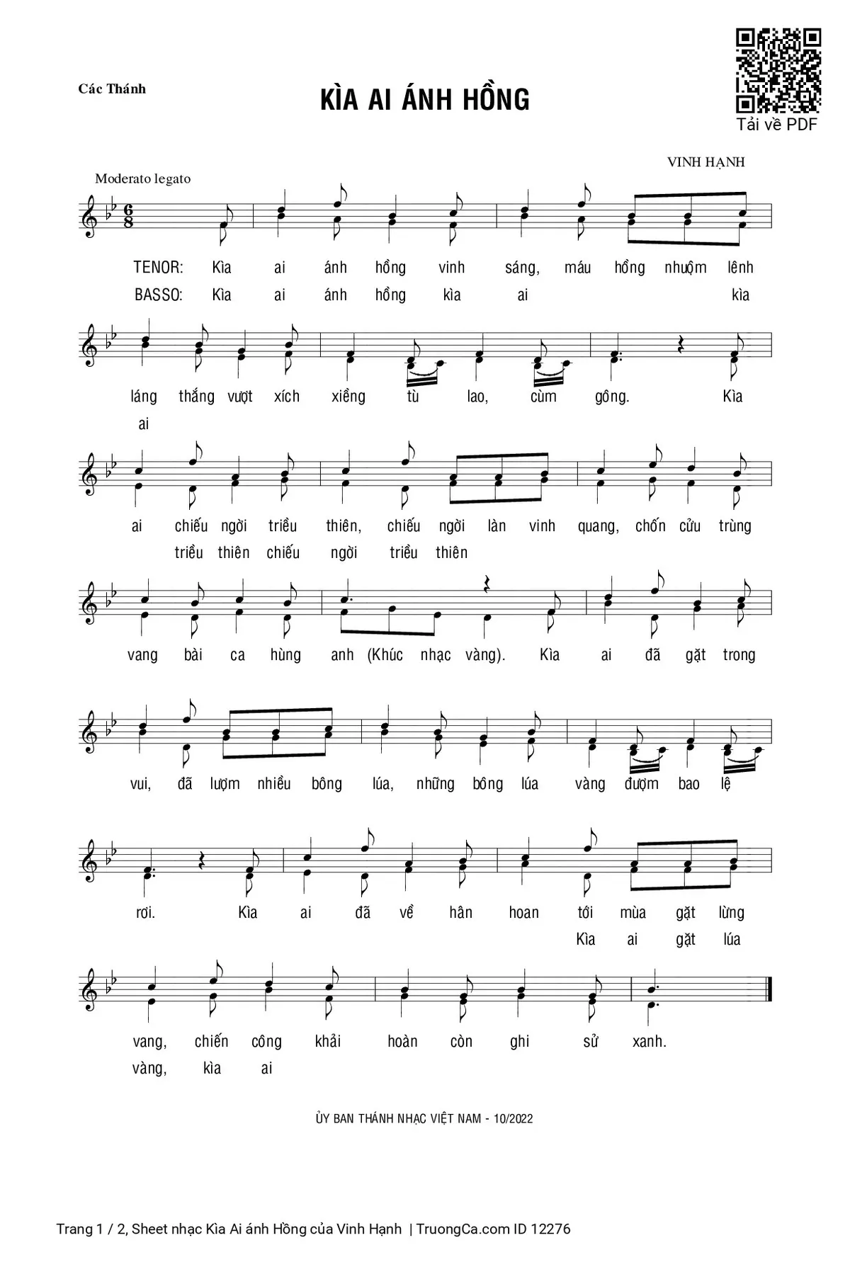 Vinh Hạnh ÐK Kìa ai ánh hồng vinh sáng máu hồng nhuộm lênh láng thắng vượt xích xiềng tù lao [PDF] [Sheet] [Lời H.A] [Mp4/Midi]