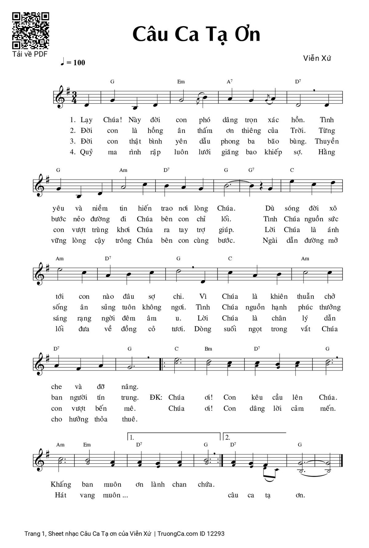 Phần nghe hát Câu Ca Tạ ơn (Viễn Xứ) được nhúng từ Youtube, Musescore hoặc link ngoài và chịu sự kiểm soát bản quyền của bên thứ ba đó, vì vậy có thể bị xóa hoặc chèn quảng cáo bất kỳ lúc nào. Nếu bạn không nghe - xem được ca sĩ hát tức là đã bị Youtube hoặc Musescore kiểm soát.
