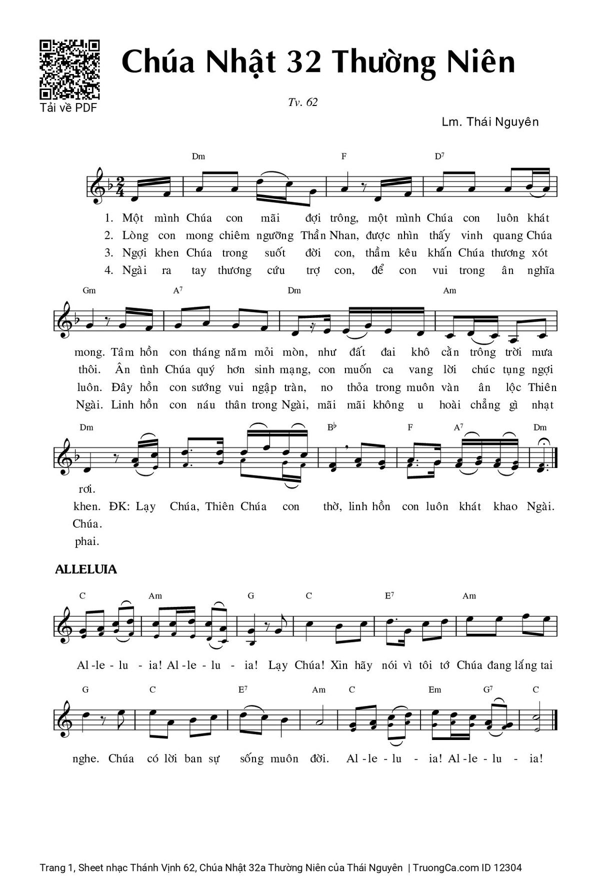 Các sheet PDF cùng tên Thánh Vịnh 62, Chúa Nhật 32a Thường Niên: