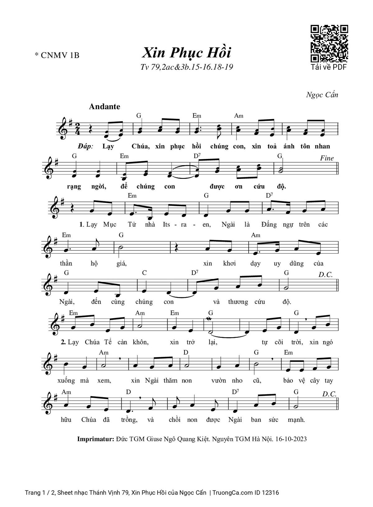 Các sheet PDF tương tự Thánh Vịnh 79, Xin Phục Hồi:
