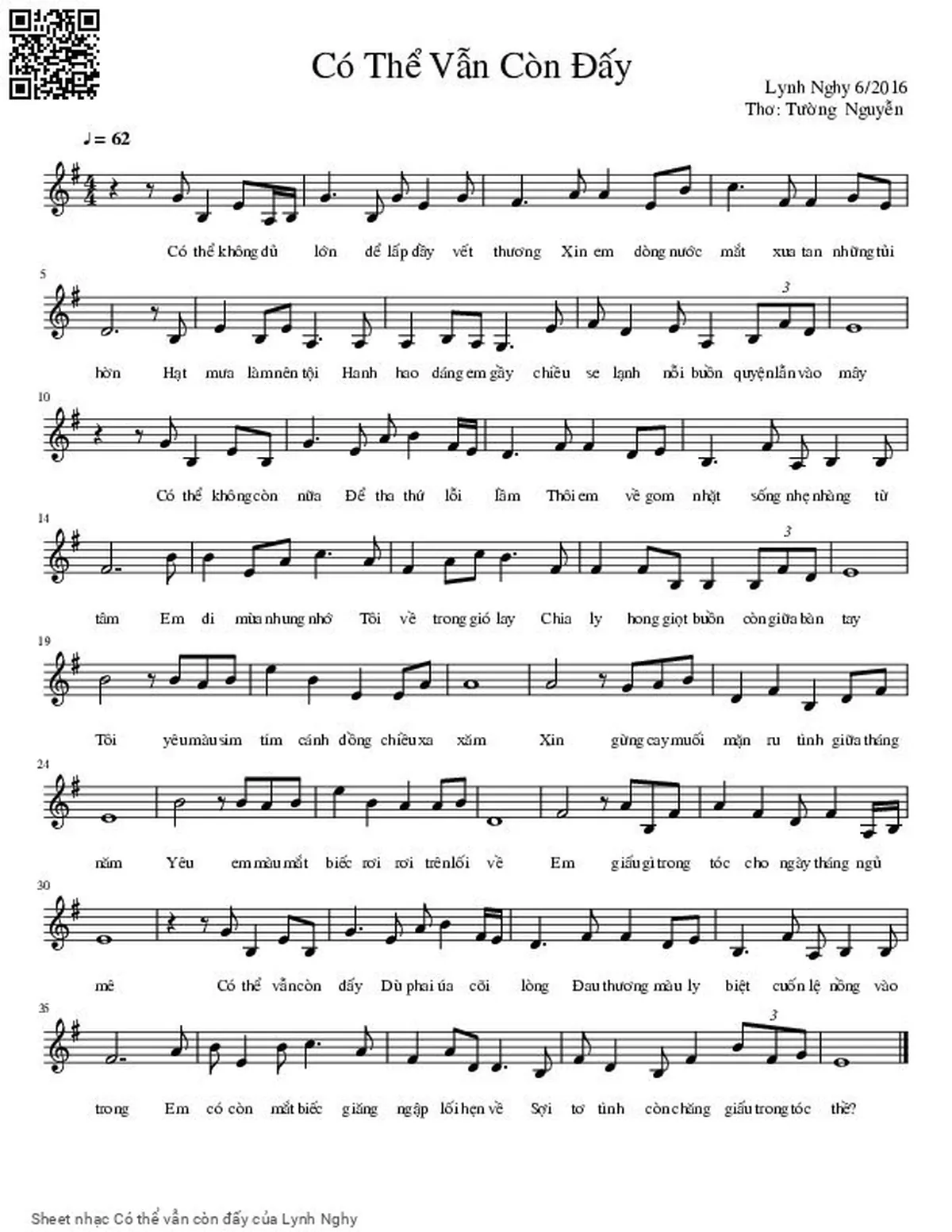 Phần nghe hát Có thể vẫn còn đấy (Lynh Nghy) được nhúng từ Youtube, Musescore hoặc link ngoài và chịu sự kiểm soát bản quyền của bên thứ ba đó, vì vậy có thể bị xóa hoặc chèn quảng cáo bất kỳ lúc nào. Nếu bạn không nghe - xem được ca sĩ hát tức là đã bị Youtube hoặc Musescore kiểm soát.