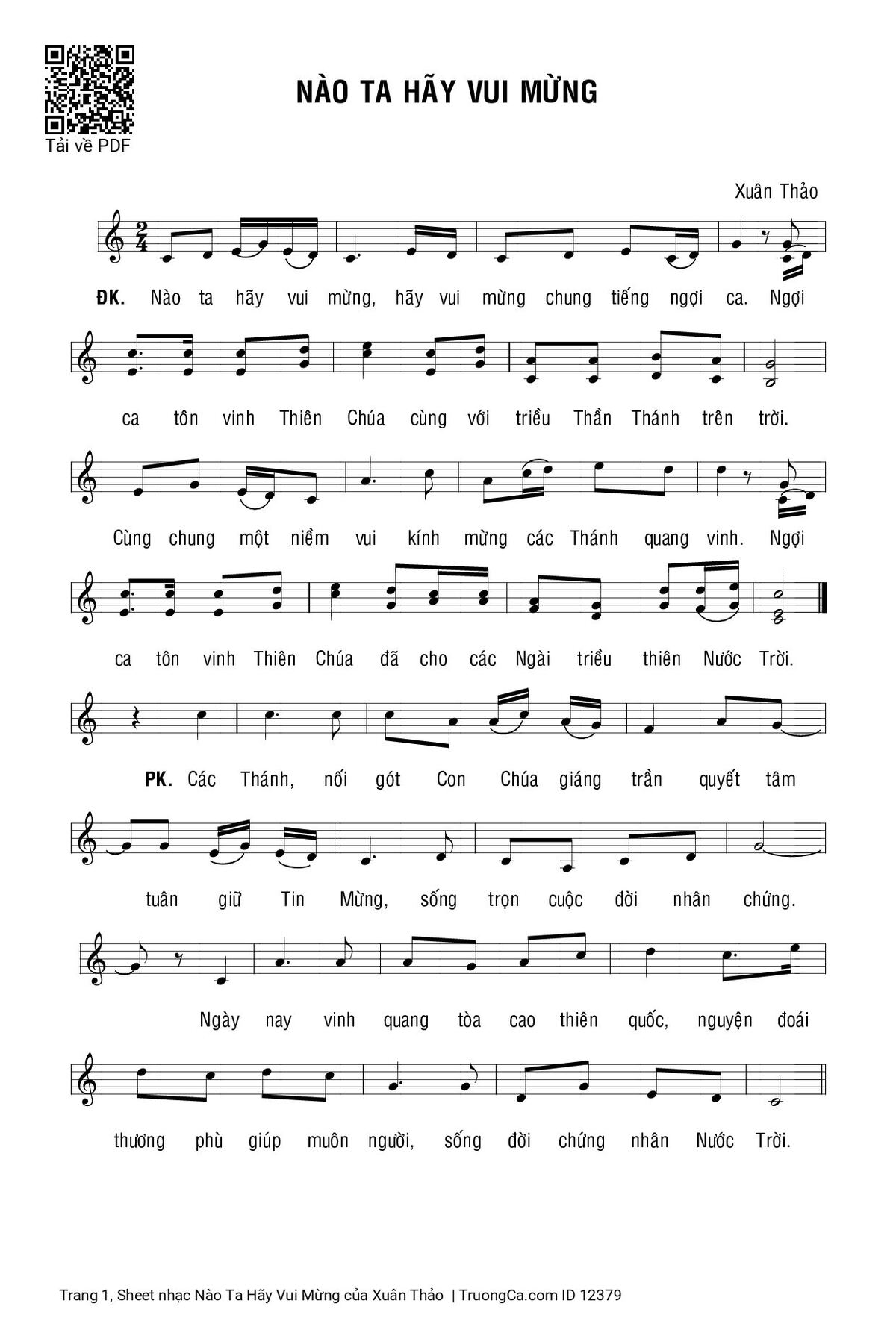 Xuân Thảo Nào ta hãy vui mừng hãy vui mừng chung tiếng ngợi ca [PDF] [Sheet] [Lời H.A] [Mp4/Midi]