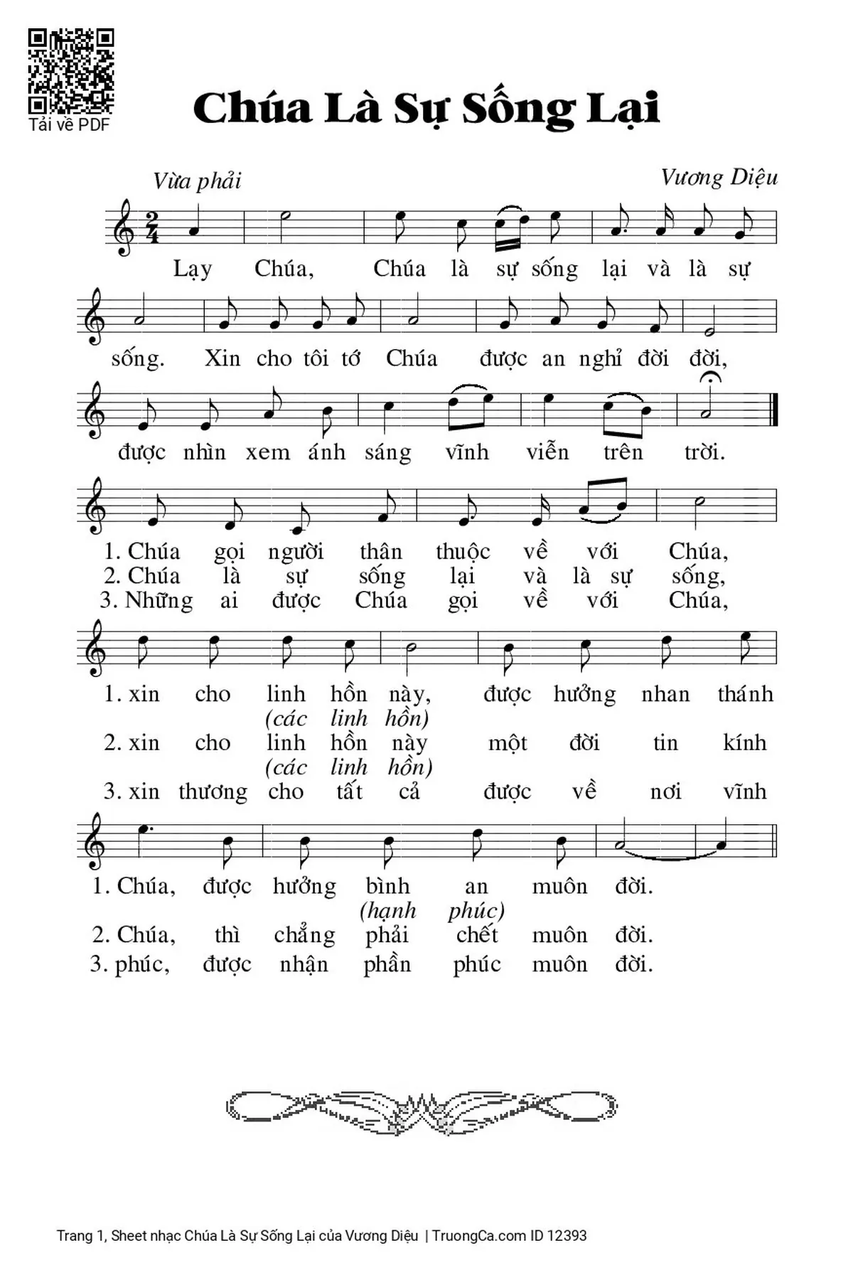 Vương Diệu Lạy Chúa Chúa là sự sống lại và là sự sống [PDF] [Sheet] [Lời H.A] [Mp4/Midi]