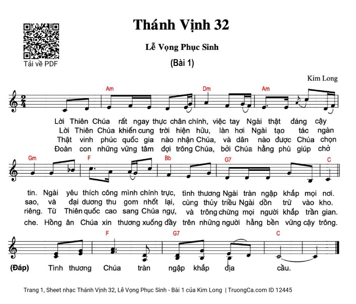 Kim Long Lời Thiên Chúa rất ngay thực chân chính [PDF] [Sheet] [Lời H.A] [Mp4/Midi]