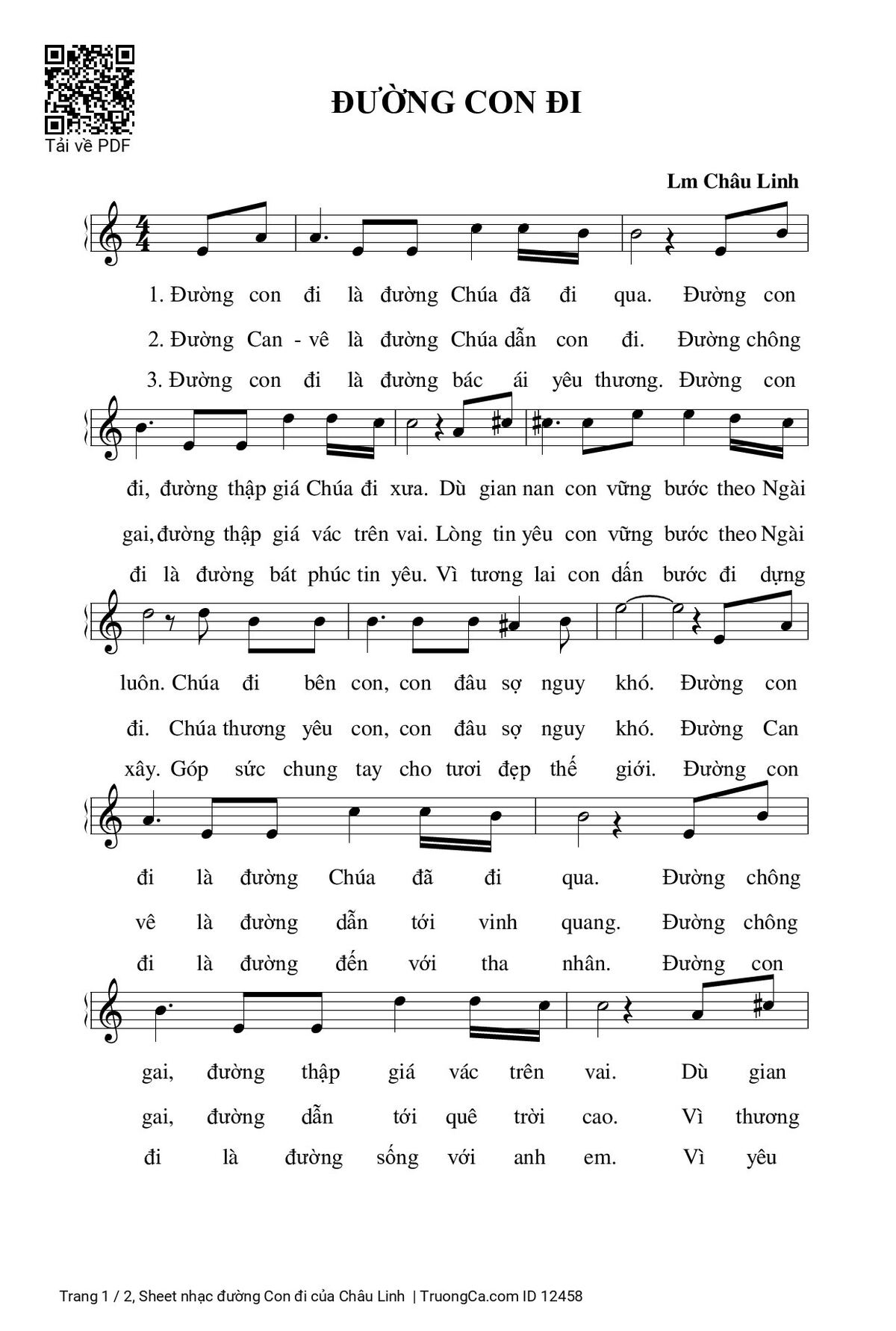 Châu Linh Đường con đi là đường Chúa đã đi qua [PDF] [Sheet] [Lời H.A] [Mp4/Midi]