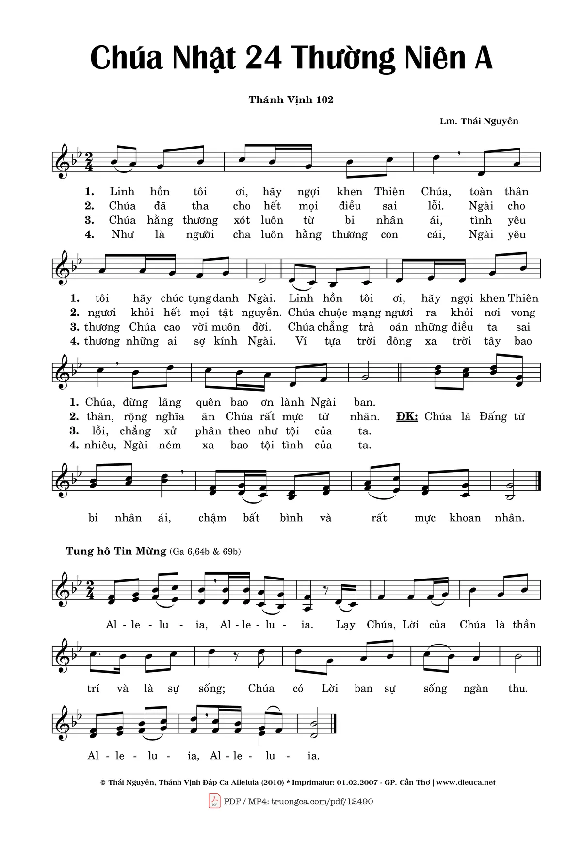 Thái Nguyên Linh hồn tôi ơi hãy ngợi khen Thiên Chúa [PDF] [Sheet] [Lời H.A] [Mp4/Midi]