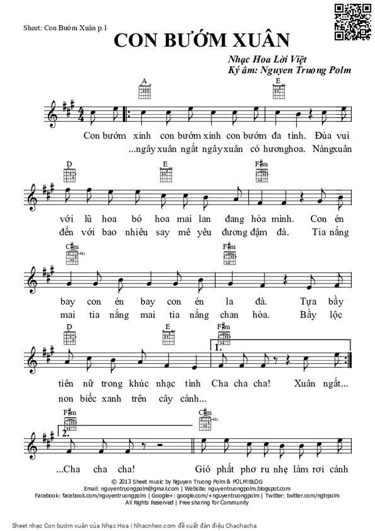 Nhạc Hoa Version ndash Lời Việt Như Mai Con bướm xinh [PDF] [Sheet] [Lời H.A] [Mp4/Midi]