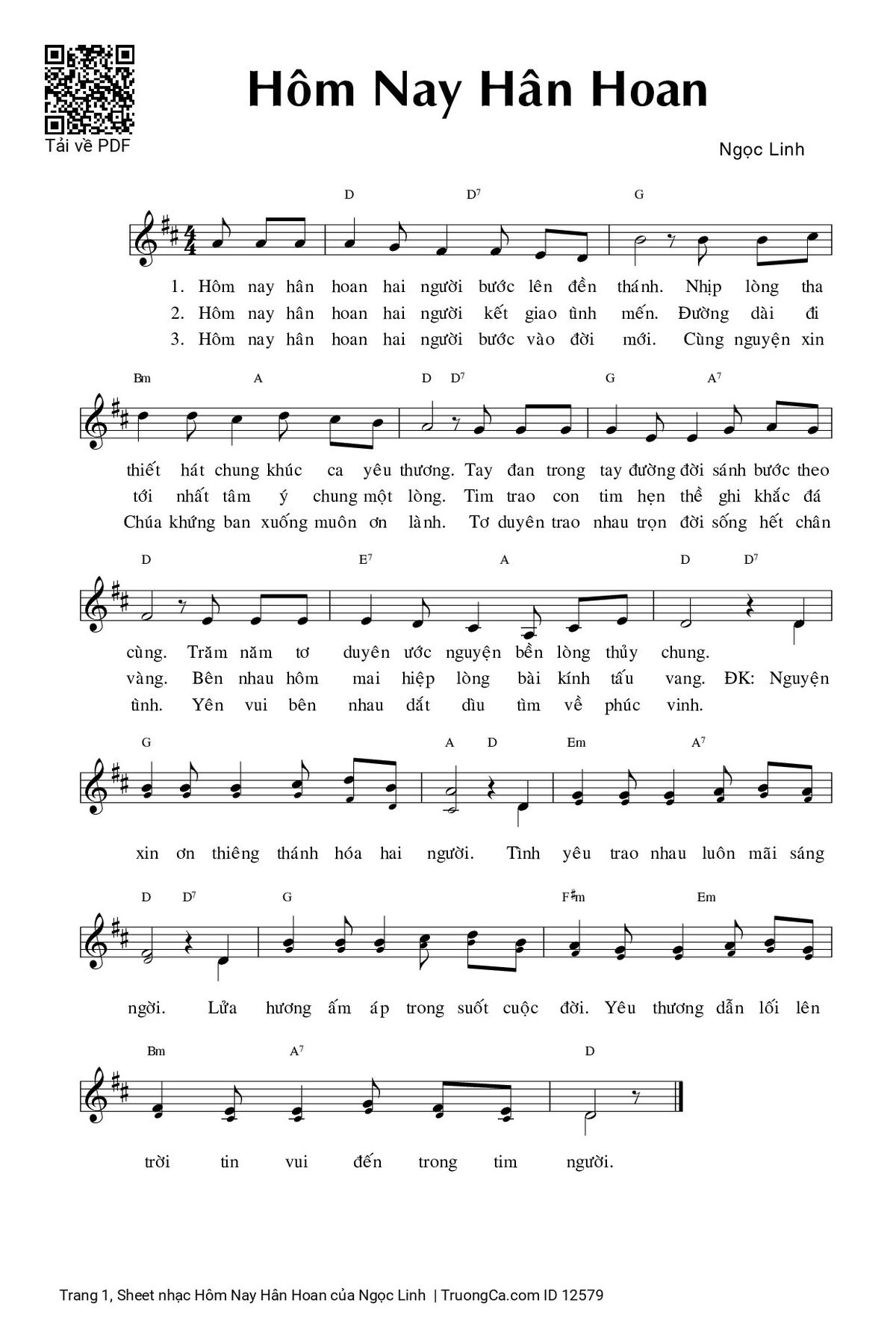 Ngọc Linh Hôm nay hân hoan hai người bước lên đền thánh [PDF] [Sheet] [Lời H.A] [Mp4/Midi]