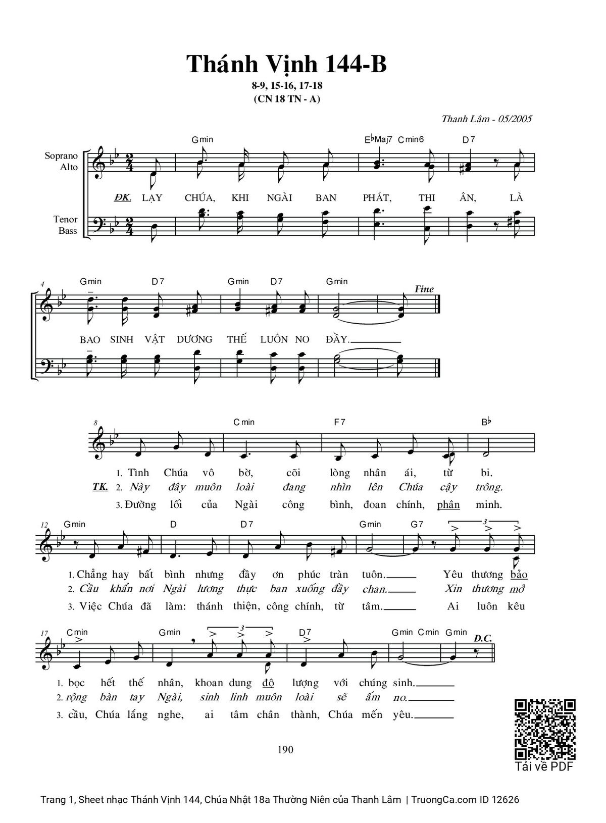 Thể loại 🌾 Nhạc Thánh Ca, 🌾 Thánh Vịnh - Đáp Ca, 🌾 Thánh ca Imprimatur, 🌾 Thánh Vịnh 144