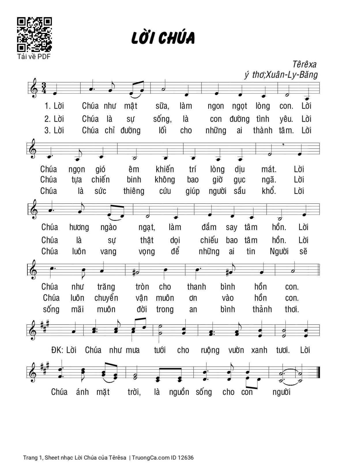 Chọn nút dấu + để tăng tông lên nửa cung, nút dấu - để giảm tông xuống nửa cung. Rê chuột vào hợp âm để xem các thế bấm hợp âm của bài hát Lời Chúa.