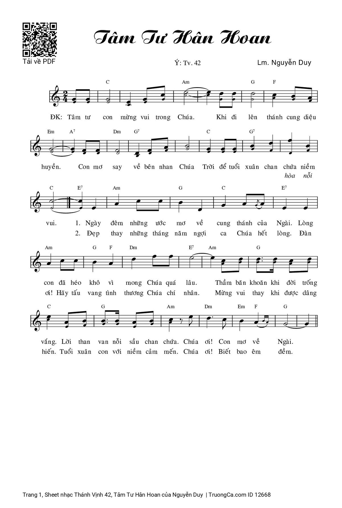 Các sheet PDF tương tự Thánh Vịnh 42, Tâm Tư Hân Hoan: