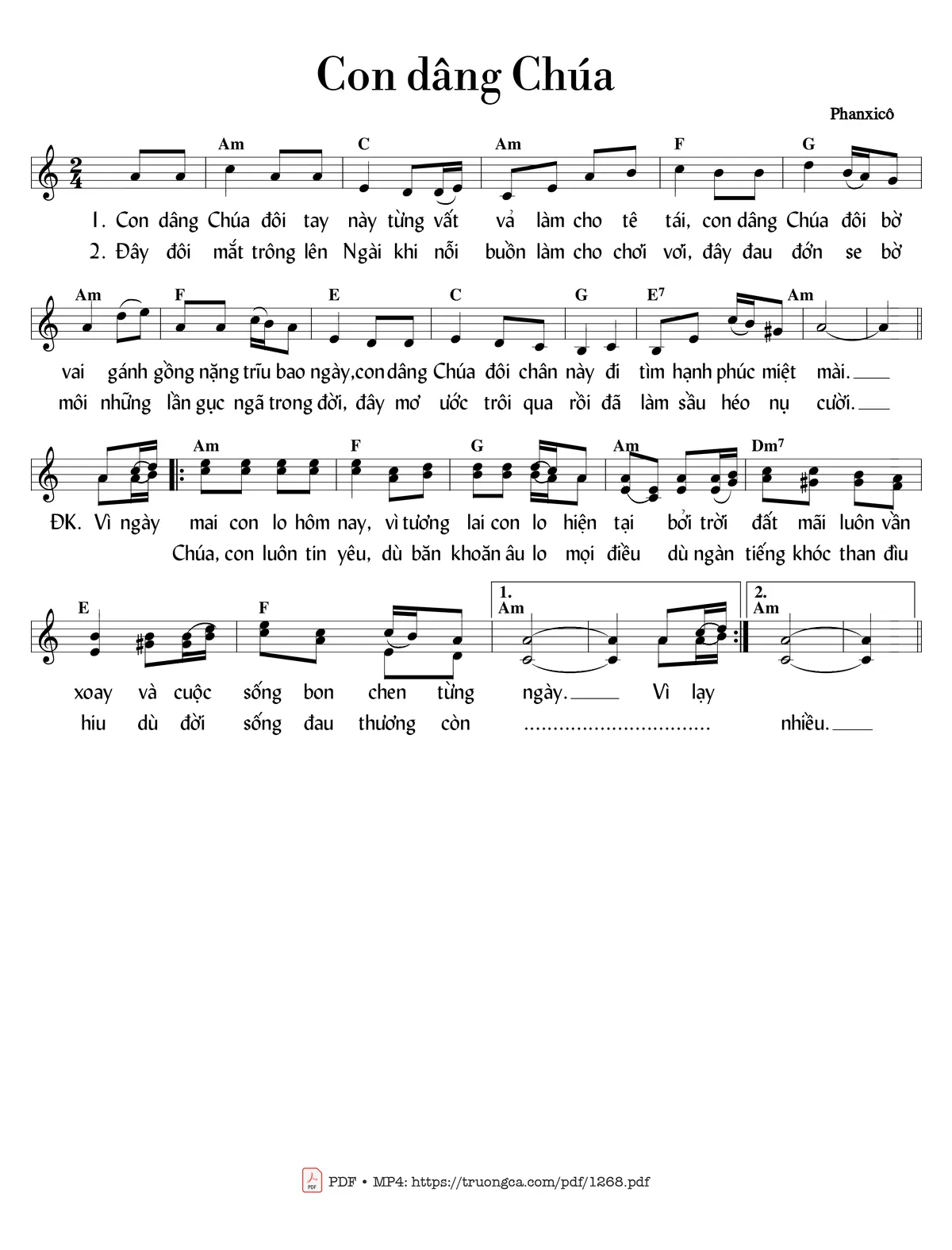 Phanxicô Con dâng Chúa đôi tay này từng vất vả làm cho tê tái [PDF] [Sheet] [Lời H.A] [Mp4/Midi]