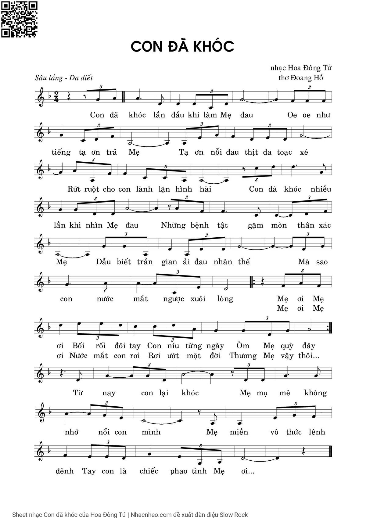 Hoa Đông Tử Con đã khóc lần đầu khi làm Mẹ đau Oe oe như tiếng tạ ơn trả Mẹ [PDF] [Sheet] [Lời H.A] [Mp4/Midi]